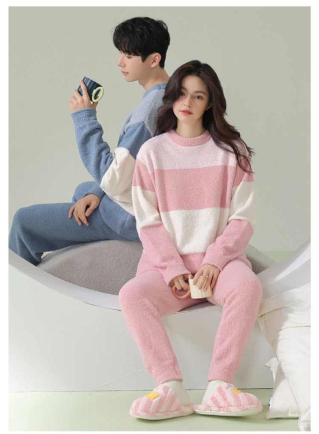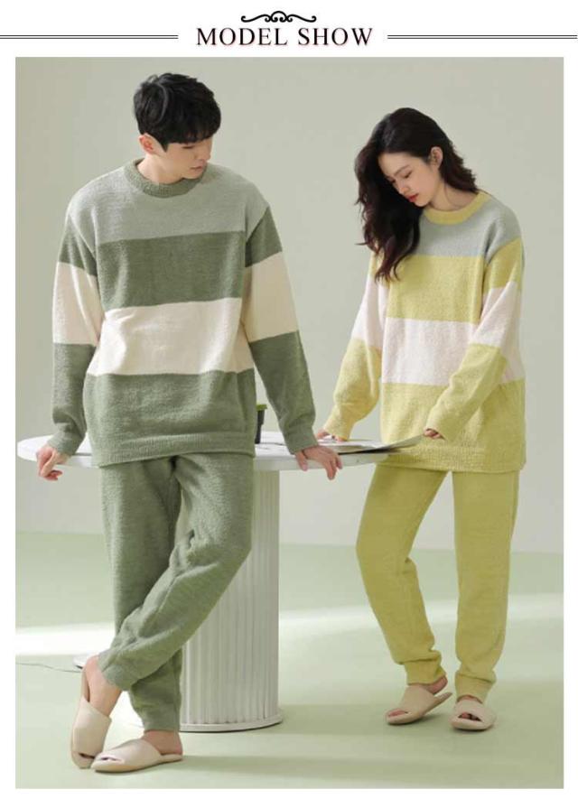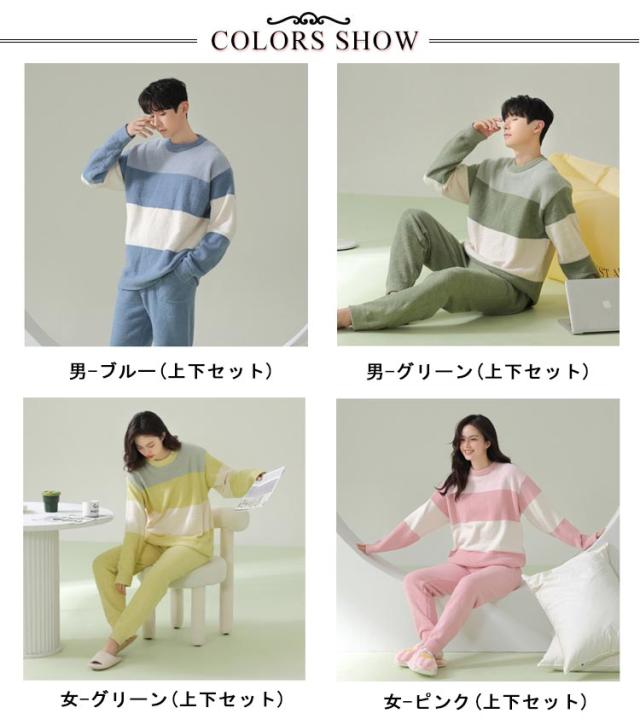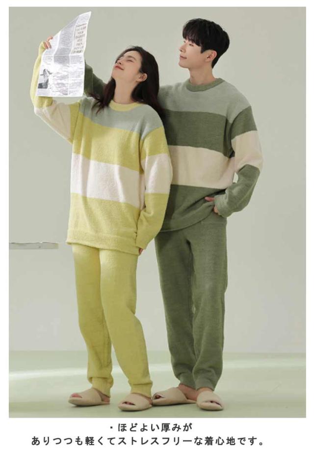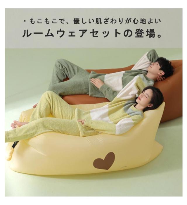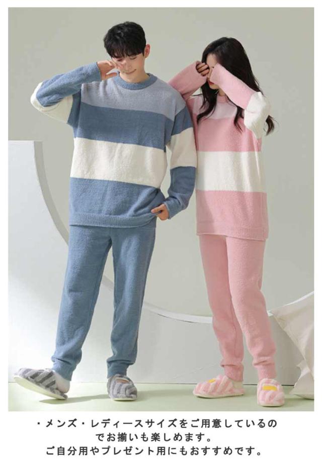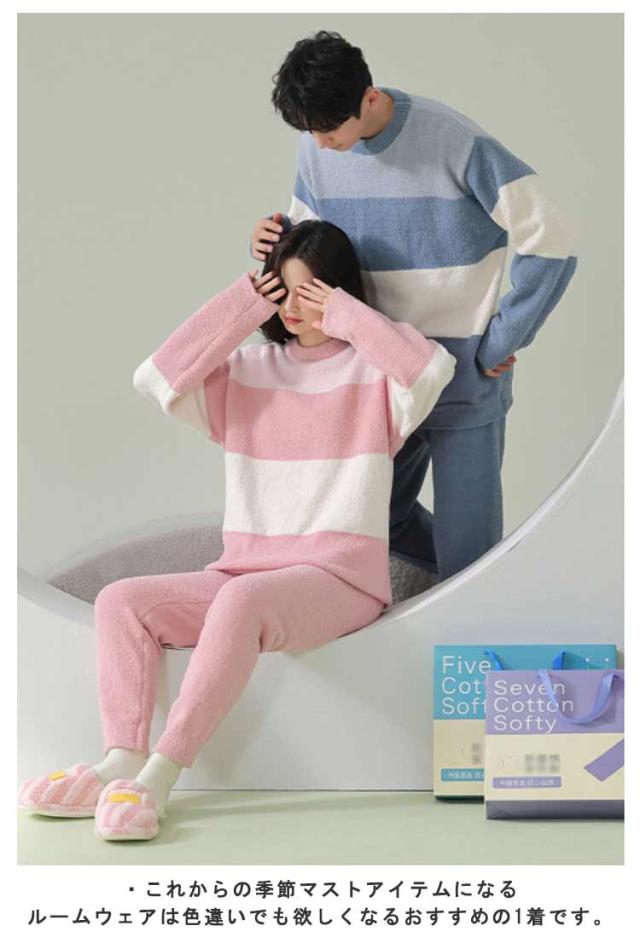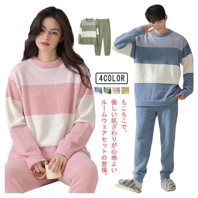 もこもこ ルームウェア 上下セット ペアパジャマ カップル お揃い レディース メンズ 長袖 暖かい クルーネック ロングパンツ 部屋着 ナイトウェア あったか 室内着 秋 冬 防寒 リラックスウェア おしゃれ かわいい クリスマス バレンタイン プレゼント ギフト