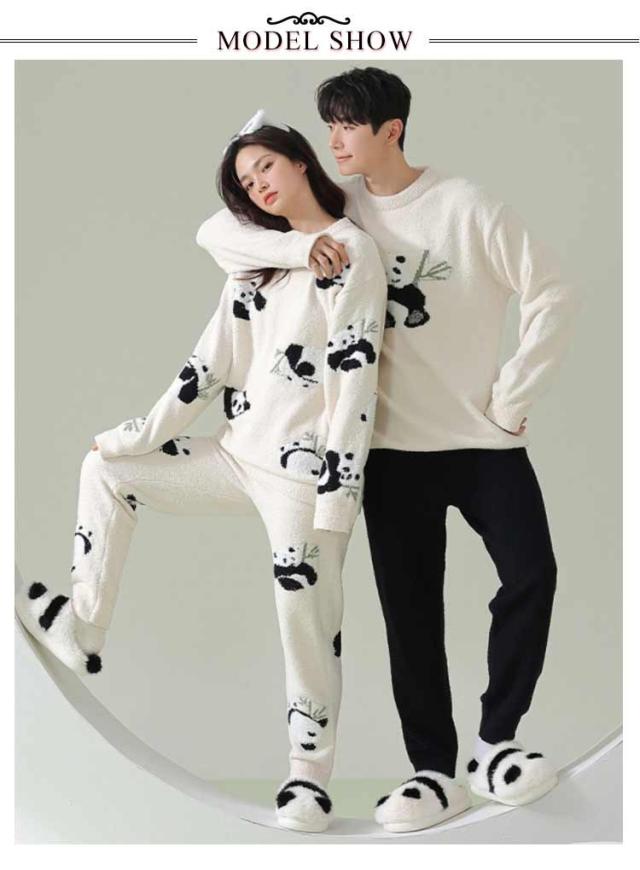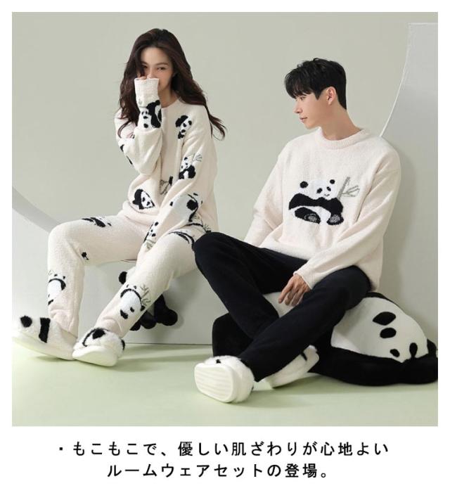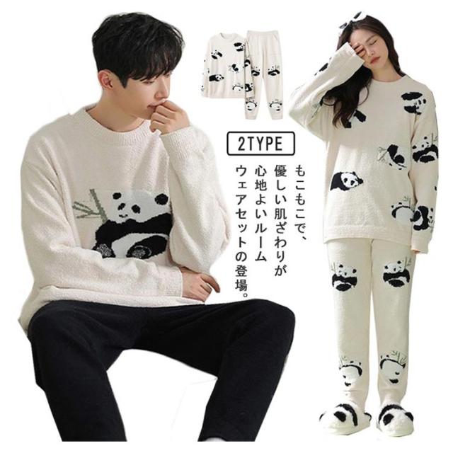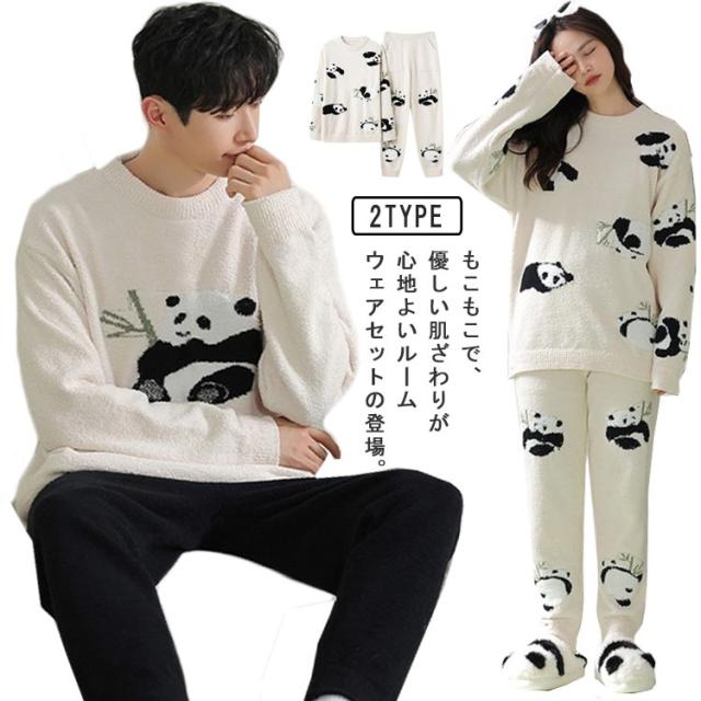 もこもこ ルームウェア ペア パジャマ カップル 上下セット レディース メンズ お揃い 暖かい 長袖 ロングパンツ クルーネック 部屋着 ナイトウェア あったか 室内着 リラックスウェア おしゃれ かわいい 秋 冬 防寒 クリスマス バレンタイン プレゼント ギフト