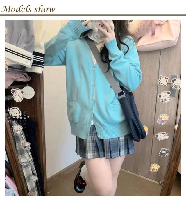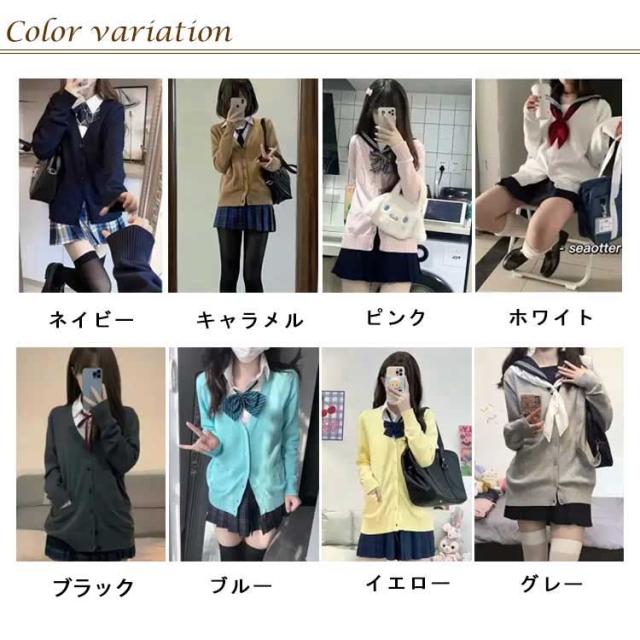 全8色!スクールカーディガン 無地 ゆったり Vネック ニット スクールセーター ニットカーディガン 大きいサイズ 制服 学生服 女子 高校生 中学生 通学 秋冬 春 紺 キャメル 青 ピンク 白