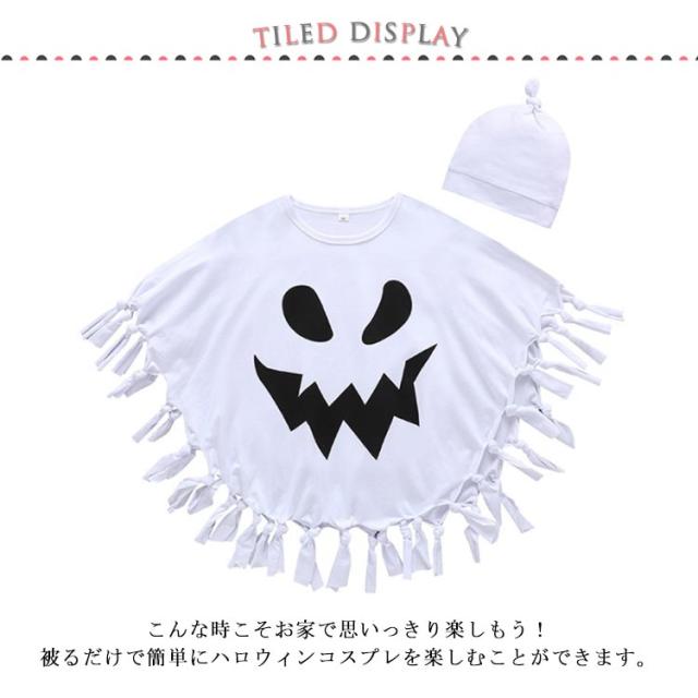 | 子供も楽しめる!ハロウィン仮装にぴったりキュートなオバケの顔デザインなポンチョです。 こんな時こそお家で思いっきり楽しもう!被るだけで簡単にハロウィンコスプレを楽しむことができます。 ハロウィン、コスプレ、仮装パーティー、ハロウィンパーティー、忘年会、文化祭など、様々な場面で活躍できますように。 | |