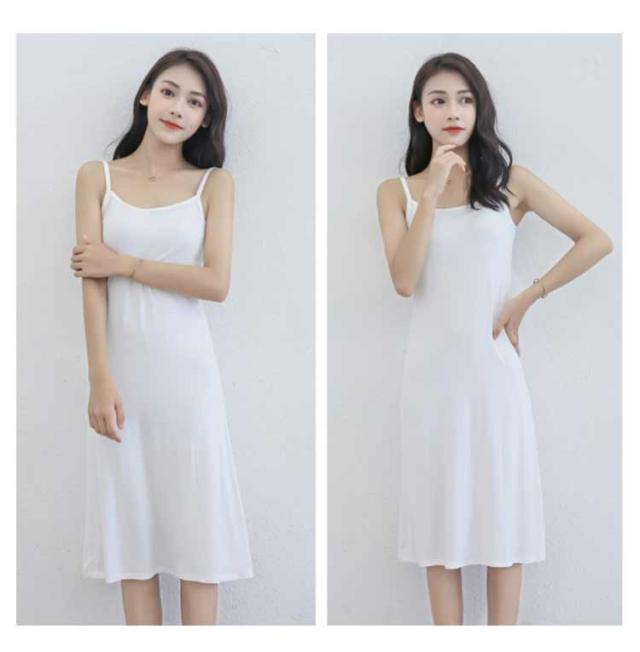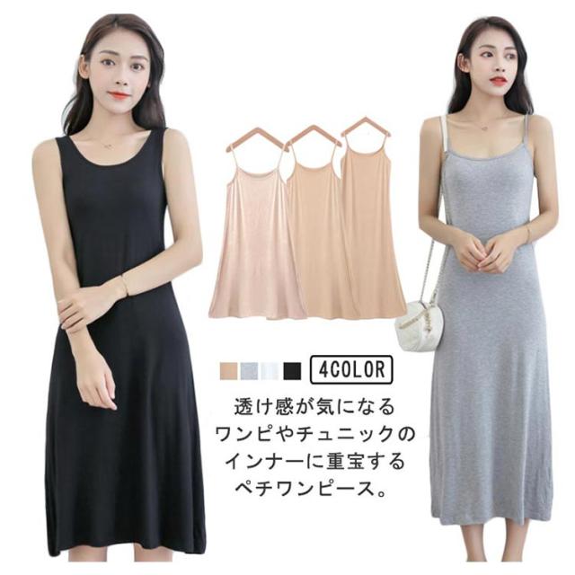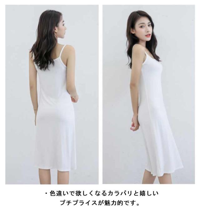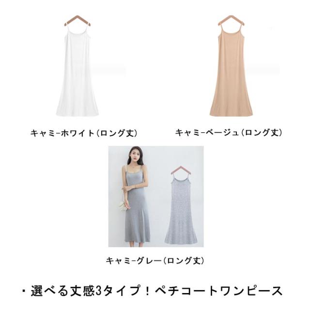 ペチコート ワンピース インナーワンピース スリップ 部屋着 タンクトップ キャミソールワンピース ノースリーブ 選べる着丈 膝丈 ロング丈 透け防止 大きいサイズ