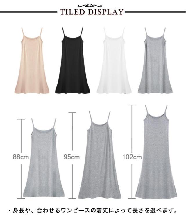 | 色 | タンク-ブラック(膝上丈) タンク-ホワイト(膝上丈) タンク-グレー(膝上丈) タンク-ブラック(膝丈) タンク-ホワイト(膝丈) タンク-グレー(膝丈) キャミ-ブラック(膝上丈) キャミ-ホワイト(膝上丈) キャミ-グレー(膝上丈) キャミ-ベージュ(膝上丈) キャミ-ブラック(膝丈) キャミ-ホワイト(膝丈) キャミ-グレー(膝丈) キャミ-ベージュ(膝丈) キャミ-ブラック(ロング丈) キャミ-ホワイト(ロング丈) キャミ-グレー(ロング丈) キャミ-ベージュ(ロング丈) |