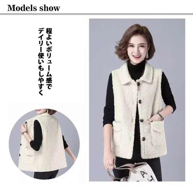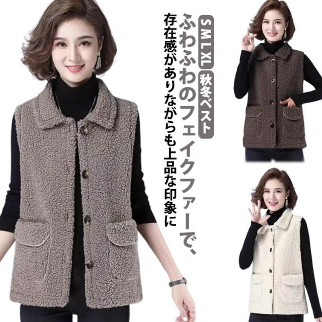 フェイクファー ベスト レディース ポケット付き ノーカラー 上品 ボリューム感 フェイクファーロングベスト レディース 秋冬ベスト ファーロングジレ 羽織り 秋 冬 カジュアル ファーベスト リアルファー レイヤード 大人ファッション 大人コーデ