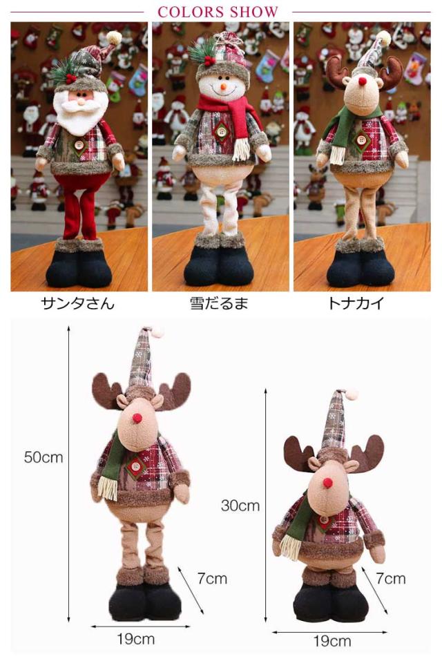 | サイズについての説明 | サンタさん:40-50cm伸縮可能 雪だるま:32-47cm伸縮可能 トナカイ:30-50cm伸縮可能 ※サイズ表の実寸法は商品によって1-3cm程度の誤差がある場合がございます。 |