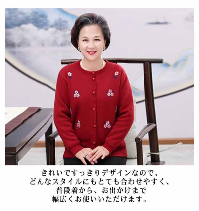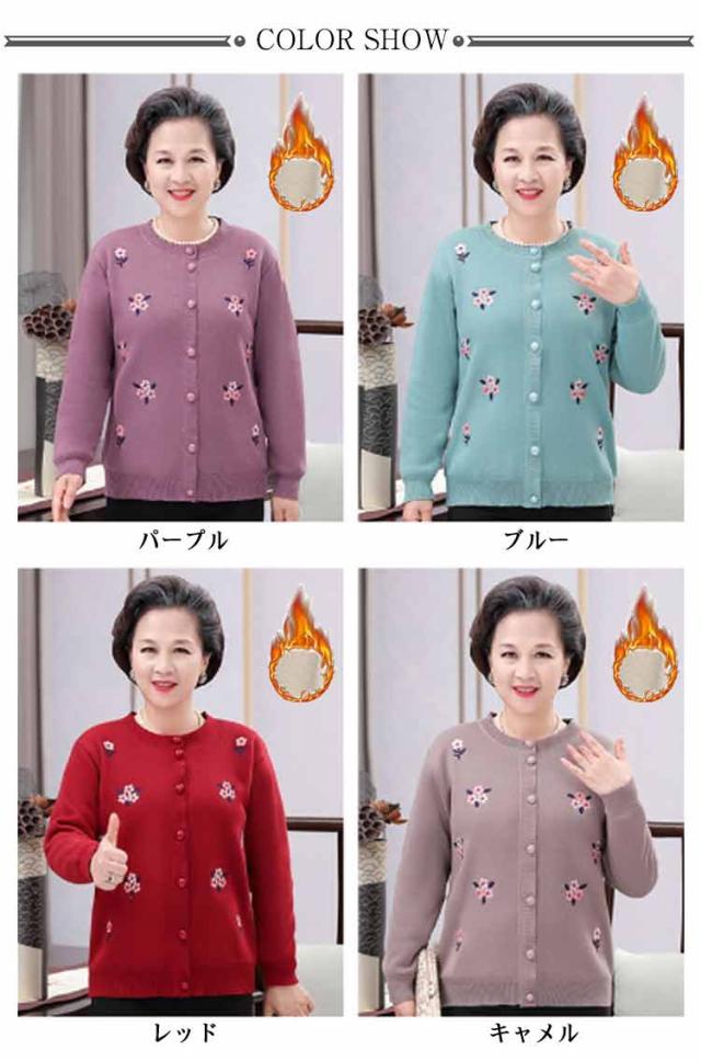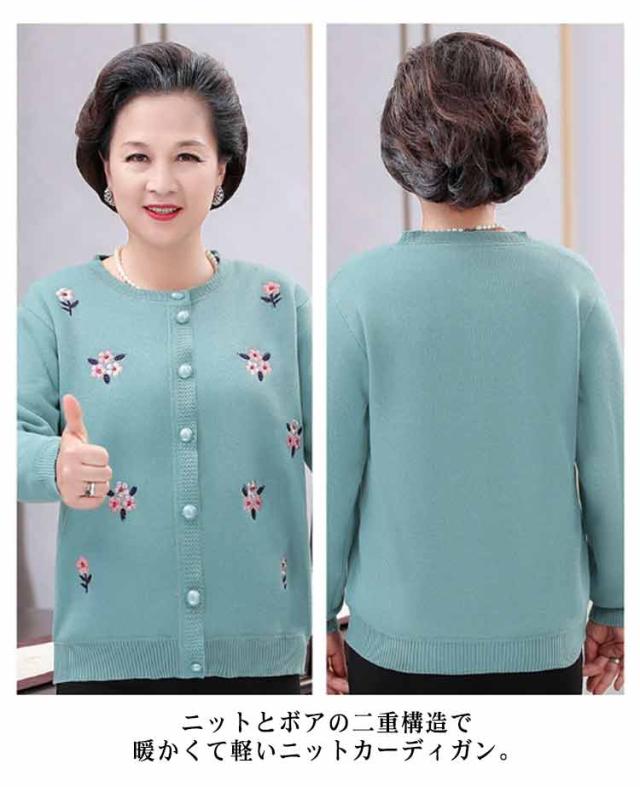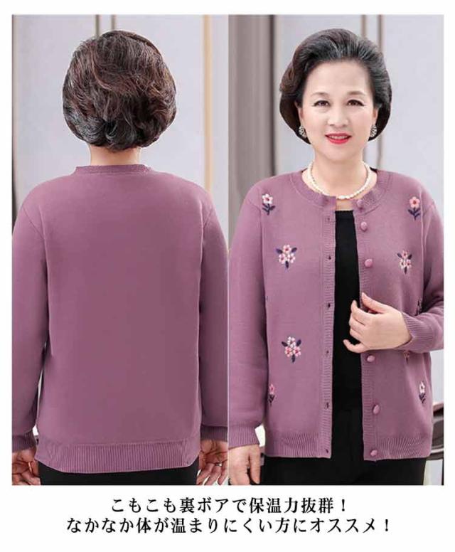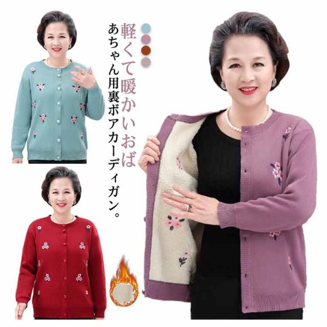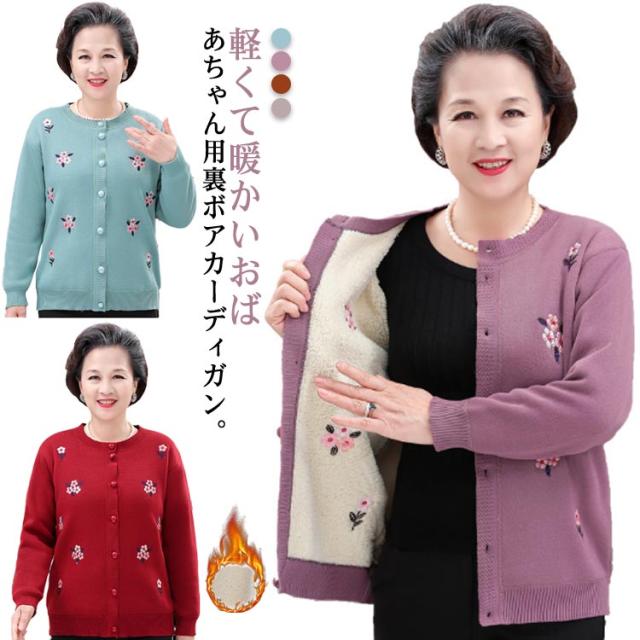 シニアファッション 軽量 暖かい あったか ニットカーディガン 裏ボア おばあちゃん 防寒服 80代 70代 60代 90代 秋冬 トップス 花柄 セーター アウター 高齢者 寒さ対策 婦人服 祖母 ミセス 祖母 お年寄り 敬老の日 ギフト プレゼント