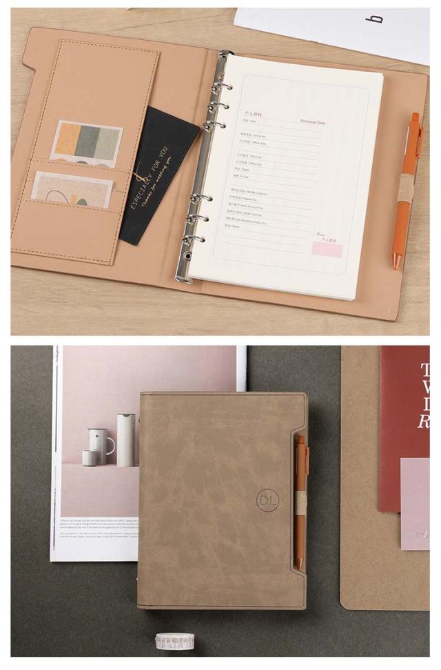| 多機能ビジネスバインダー手帳です。 革表紙は、水に強く汚れにもおしゃれです。 多機能ポケットは、カードや伝票などを入れることができ、収納に便利です。 ペン挿しのデザインは、シンプルで雰囲気があり、ペンをなくしにくいです。 様々な色とサイズで、ご希望にお応えします。 | |