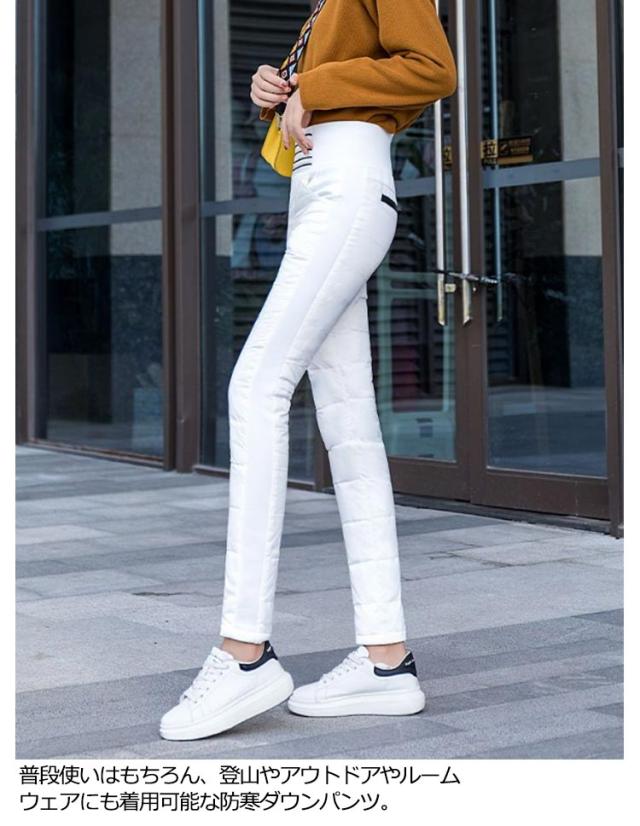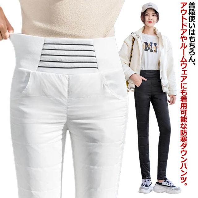 ダウンパンツ 極暖 防寒 保温 レディース ダウン90% 防寒パンツ 暖パン スリム あったか 暖かい 秋 冬 防寒着 厚手 ロングパンツ ハイウエスト ウエストゴム 細身 撥水 防水 軽量 軽い 50代 40代 60代 30代 おしゃれ 普段着 大きいサイズ 【送無】