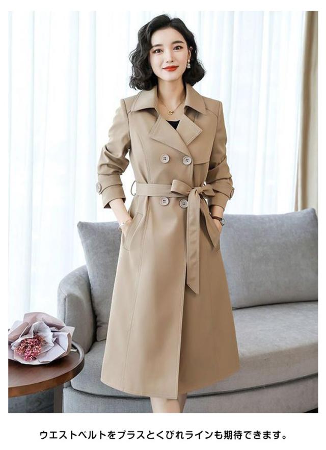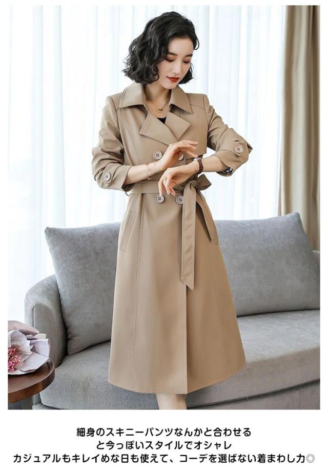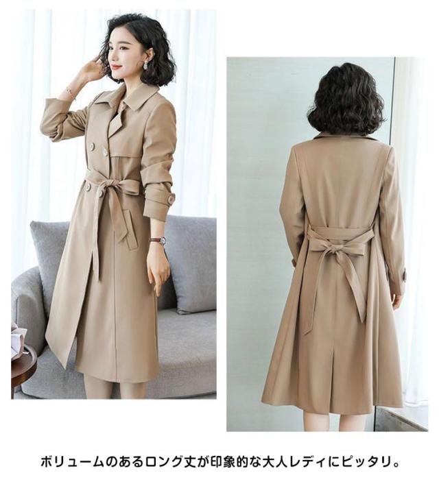 | 不動人気あるロング丈トレンチコート。 ビジネスにもカジュアルにも!機能性・気回し力どちらも優秀な一着。 ボリュームのあるロング丈が印象的な大人レディにピッタリ。 ウエストベルトをプラスとくびれラインも期待できます。 しっかりとしたポリエステル素材を使い、防風効果も発揮します。 細身のスキニーパンツなんかと合わせると今っぽいスタイルでオシャレ カジュアルもキレイめな日も使えて、コーデを選ばない着まわし力◎ | |