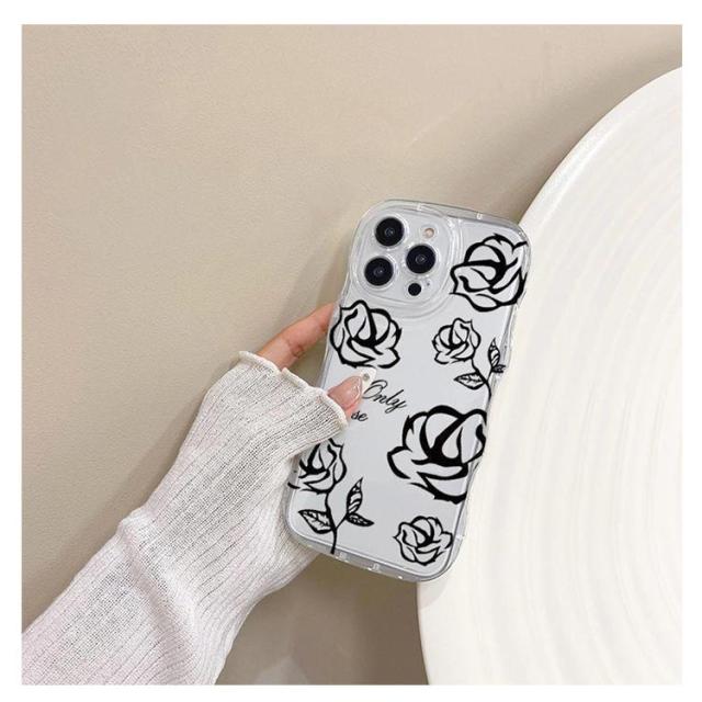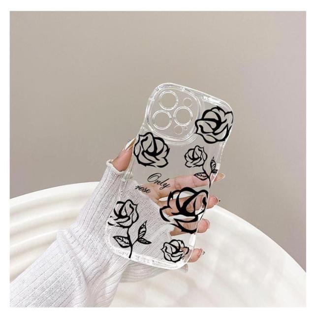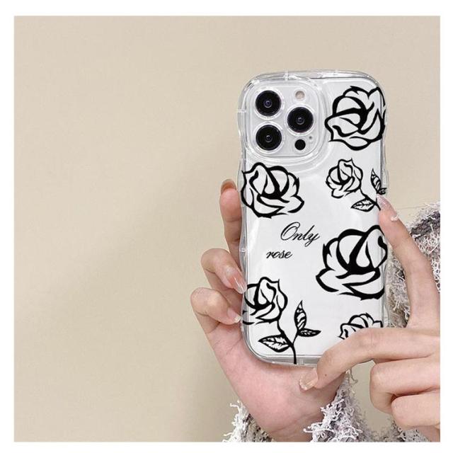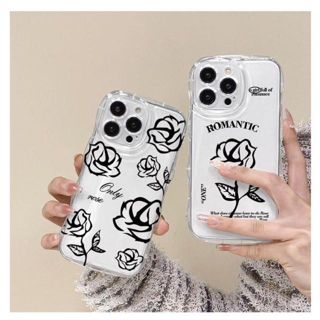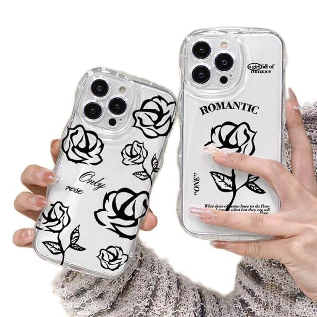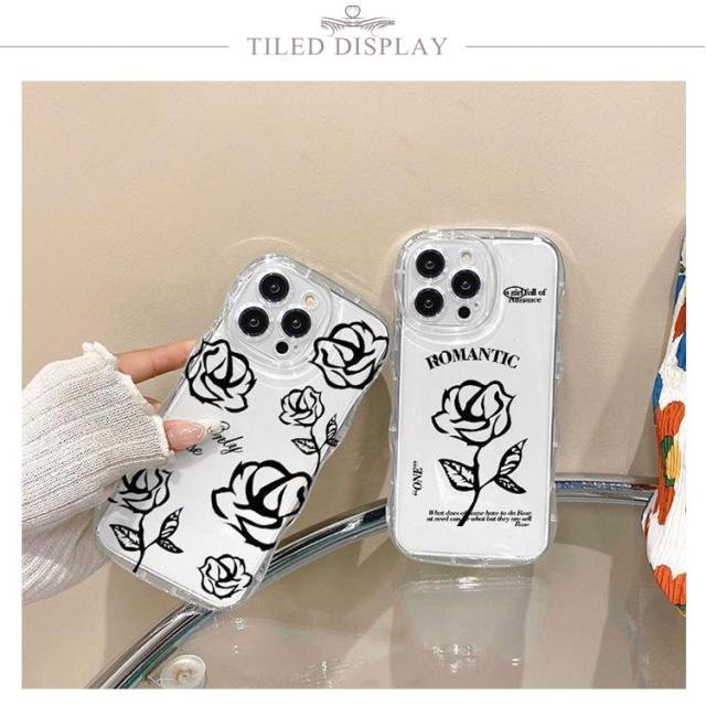 iPhone15 ケース iPhone15Pro ケース iPhone14 ケース iPhone15 ケース iPhone14 pro promax iPhone13 韓国 おしゃれ 可愛い かわいい ケース ローズ 花 フラワー 耐衝撃 ウエーブ クリアケース なみなみ うねうね 透明 送料無料