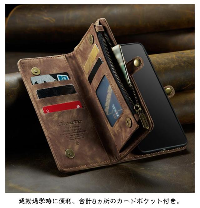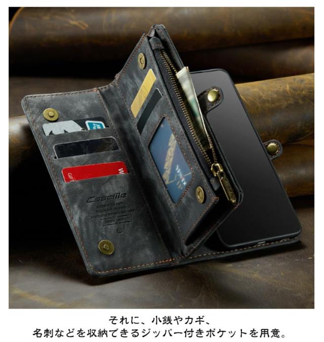 | 【対応機種】iPhone 【素材】PUレザー TPU 【セット内容】スマホケース(iPhone本体は同梱されておりません) 【特徴】 インナーケースは、本体とマグネット分離式になっているため、通話や撮影などのご使用時には簡単に取り外します。 たっぷり収納できる手帳型ケースが登場しました。 内側には交通系カードやクレジットカードが入るカードポケットを搭載。カードケースとしてもご利用いただけます。 それに、小銭やカギ、名刺などを収納できるジッパー付きポケットを用意。 お出かけ際に、これだけを持っていけば十分! インナーケースをつけたままのワイヤレス充電も可能です。 スマホを横置きできるスタンド機能で長時間の動画視聴もらくらく!新幹線、飛行機の中での暇つぶしに最適です。 上品な質感のPUレザーを使用し、触り心地や耐久性も抜群。 カメラレンズ周囲の穴に段差を設けることによって、iPhoneの突出したレンズを保護。 通勤通学時に便利、合計8ヵ所のカードポケット付き。 ケースと同じ色のハンドストラップも付属。ストラップの取り付けがやすく、お気に入りストラップの変更も可能です。 | |