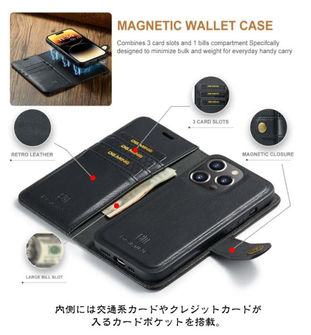 分離型 iPhone15 ケース マグネット 分離式 手帳型 iPhoneケース 手帳型ケース スマホケース 財布型 ウォレット型 ケース 着脱式 マグネット内蔵 カード収納 カード入れ スタンド機能