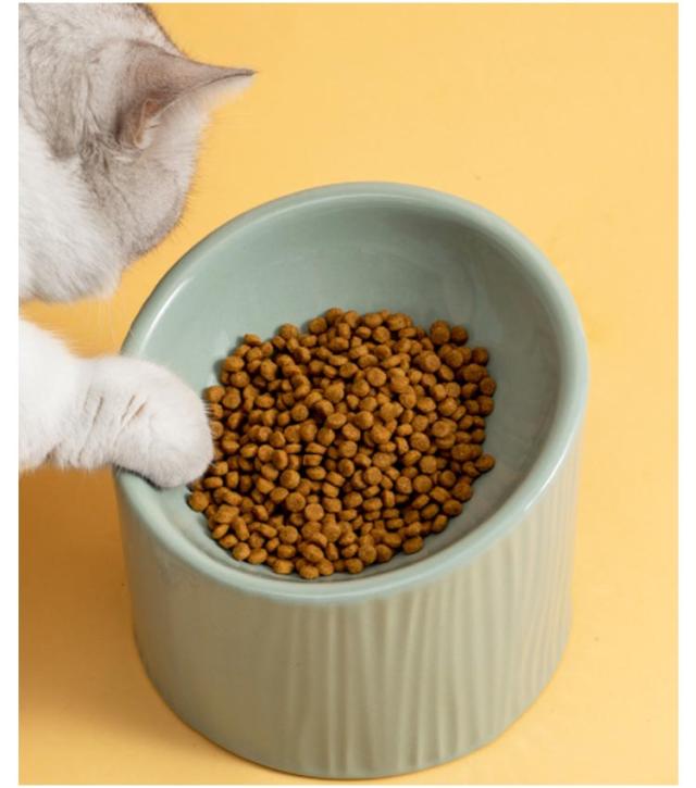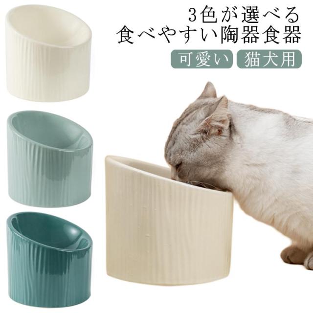猫 食器 傾斜 陶器 フードボウル 猫用 犬用 食べやすい 高 フードボール 傾斜 こぼれない 高さがある 食べやすい 餌 エサ 餌入れ エサ入れ エサいれ 皿 お皿 ペット 電子レンジ対応 おしゃれ 可愛い 3色