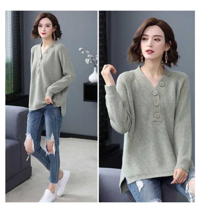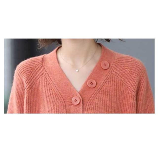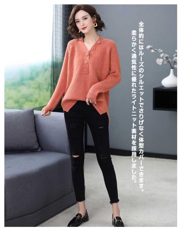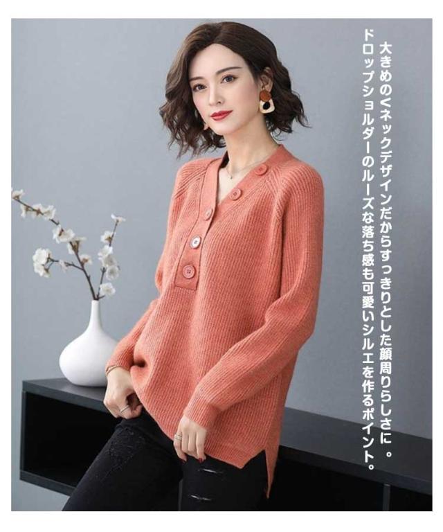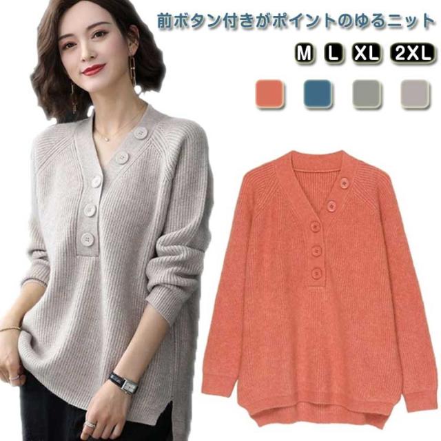 ニット セーター 飾りボタン付き Vネック リブ ニット 長袖 レディース トップス Vネックニット マーブルボタン ニットセーター 長袖 プルオーバー ドロップショルダー ゆったり 柔らか しっとり 送料無料 秋冬 韓国ファッション