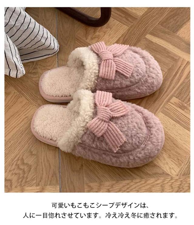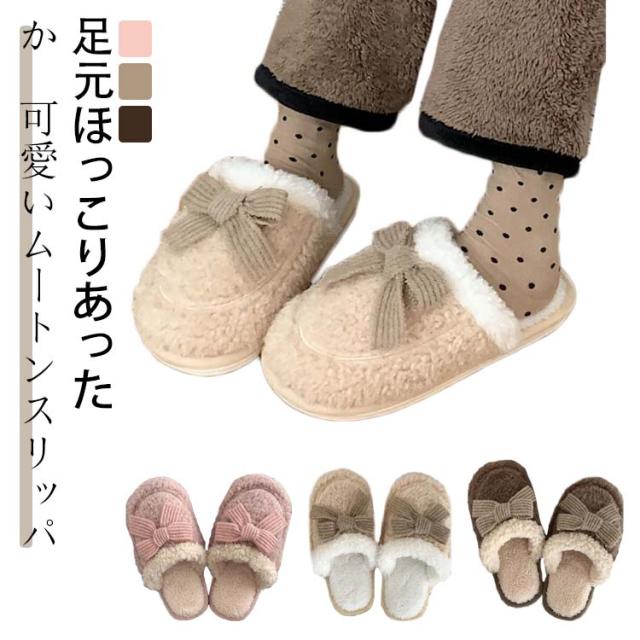 ムートンスリッパ レディース 可愛い ルームシューズ スリッパ 暖かい 洗える もこもこ ムートン 風 あったか 秋冬 裏ボア 冬 冬用 北欧 滑り止め リボン付き 来客用 冷え対策 室内履き かわいい 蒸れない ふわふわ おしゃれ 室内スリッパ ふわふわスリッパ ギフト 送料無料