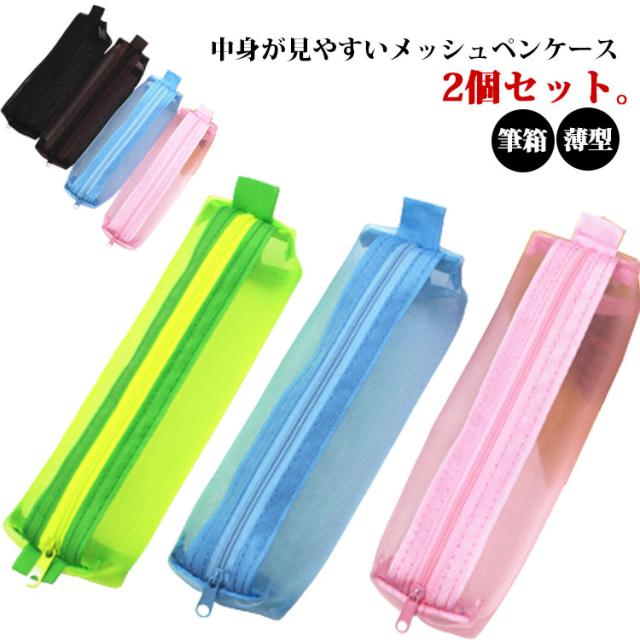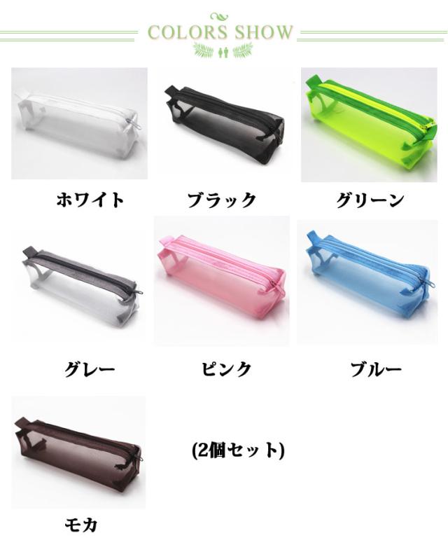 2個セット メッシュペンケース 7色 おしゃれ シンプル コンパクト ペンポーチ 薄型 かわいい 筆箱 ふでばこ 小物入れ 無地 試験用 通学 通勤 旅行 ギフト 大人 学生