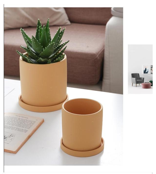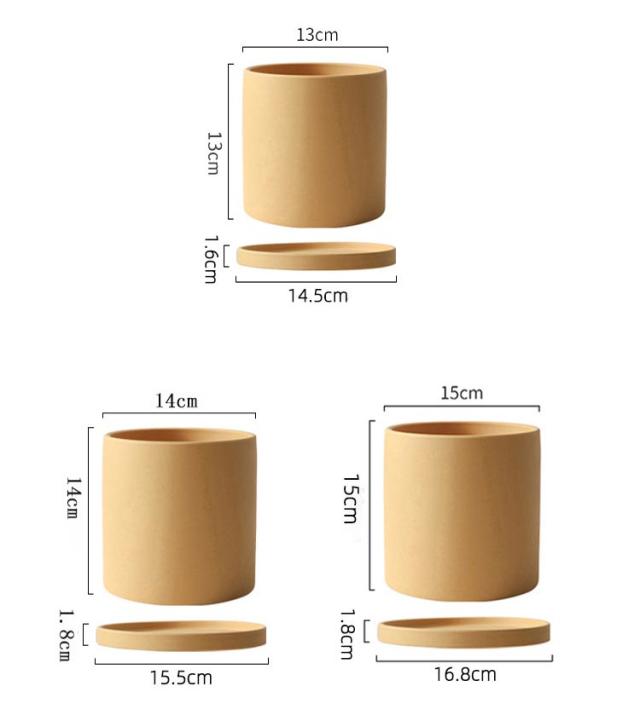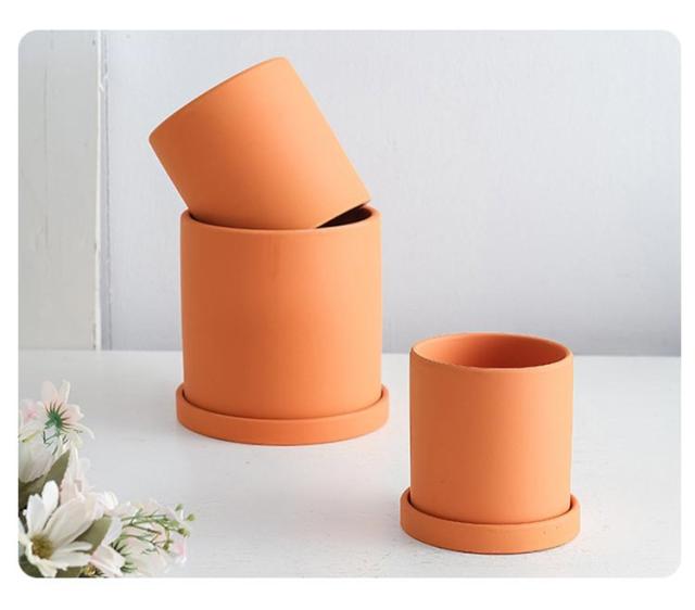 3点セット 植木鉢 陶器 おしゃれな植木鉢 鉢 送料無料 直径13cm 14cm 15cm セラミックス トレー付き テラコッタ 素焼き鉢 筒型 北欧風 シンプル 陶器の植木鉢 鉢植え 小鉢 小型 室内