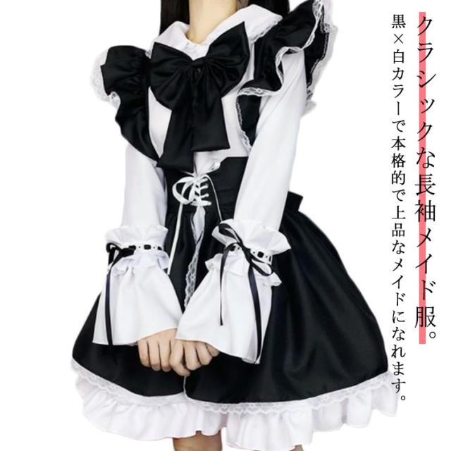 | クラシックな長袖メイド服。黒×白カラーで本格的で上品なメイドになれます。 縫製、細部にまでこだわったキュートさ満点なつくり!フリルも納得のボリューム感で、これであなたも本格メイドコスの完成♪ アクセントのフリルカチューシャ付き♪可愛いメイドに必須なアイテムが全て詰まっています♪ 小さいサイズから大きいサイズまで豊富なサイズ展開!自分にぴったりのサイズが選べるからボディラインも綺麗に出ます☆ 長袖だから暖かい◎露出控えめでエレガントな雰囲気なので、コスプレ初心者にもおすすめです♪ | |