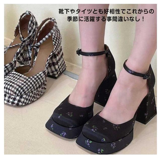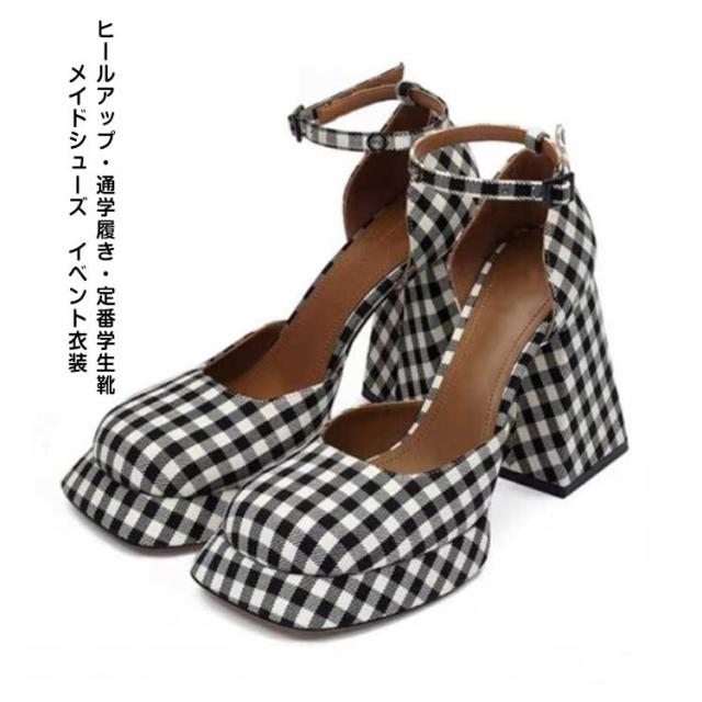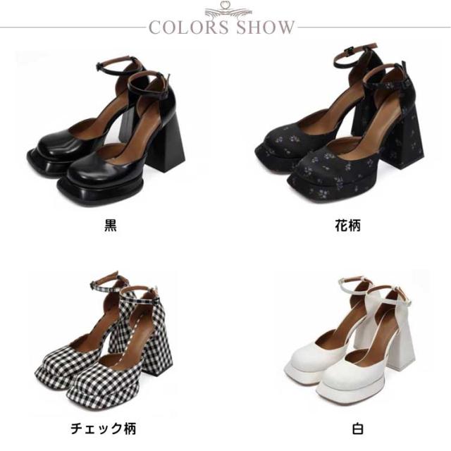 10cmヒール ローファー 厚底 チャンキーヒール レディース ストラップ パンプス 太ヒール 厚底シューズ ヒールローファー 厚底パンプス 美脚 きれいめ ゴスロリ 制服 ロリータ コスプレ メイド 韓国ファッション