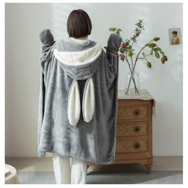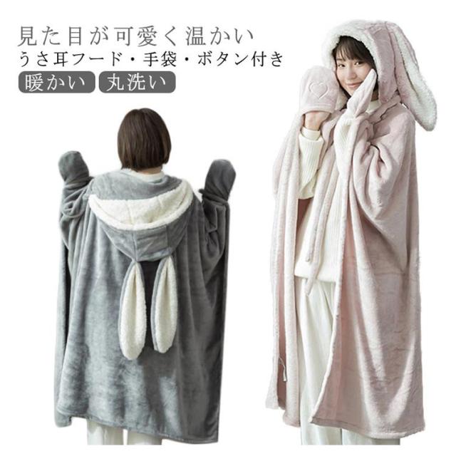 着る毛布 ロング ルームウェア レディース 着る毛布 子供 着るブランケット かわいい ウサギ フード付き ガウン ボタン付き 前開き 長袖 ブランケット ポンチョ フランネル生地 暖かい ふわふわ もこもこ パジャマ 厚手 あったか 冬 丸洗い 仕事 読書 勉強 学校生活