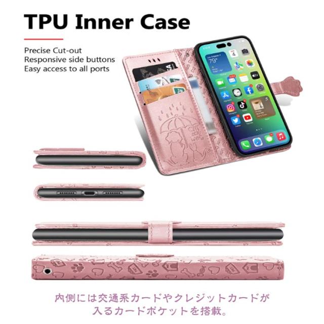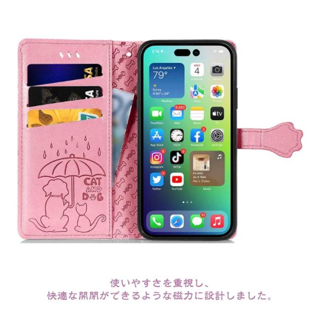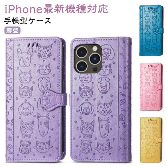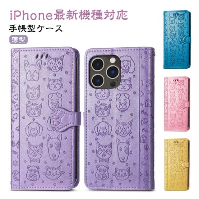 iPhoneケース 型押し 犬 猫 ワンちゃん ネコ iPhone15 ケース 手帳型 スマホケース スリム 手帳型ケース 薄型 カード収納 マグネット内蔵 カード入れ スタンド機能 衝撃保護 PU レザー