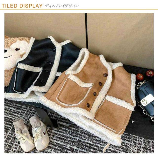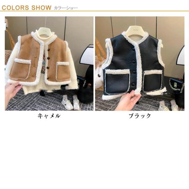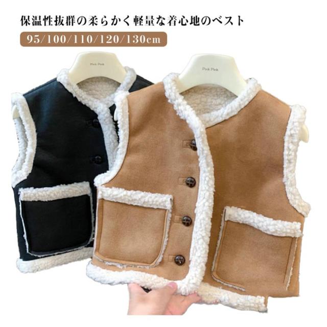 子供服 キッズ 女の子 男の子 ベスト ボアベスト スエード生地 ボア 冬アウター アウター 前開きベスト 裏起毛 防寒 秋冬 暖かい ノースリーブ ジャケット もこもこ カジュアル あったか 通学 通園 キャメル ブラック 95/100/110/120/130cm 送料無料