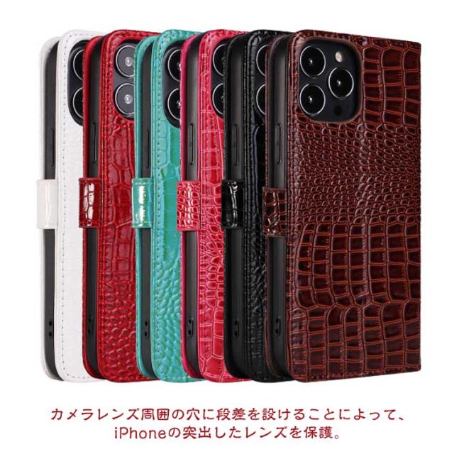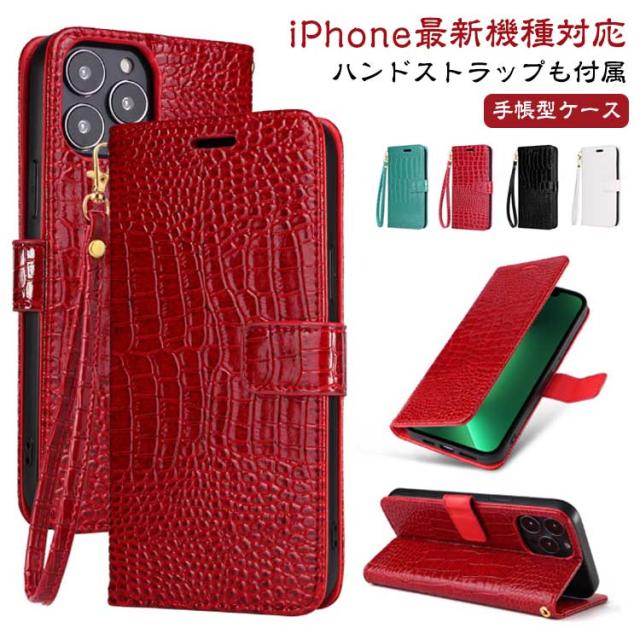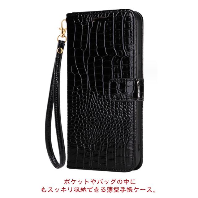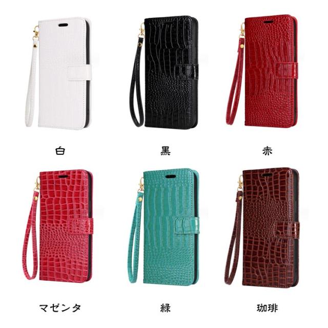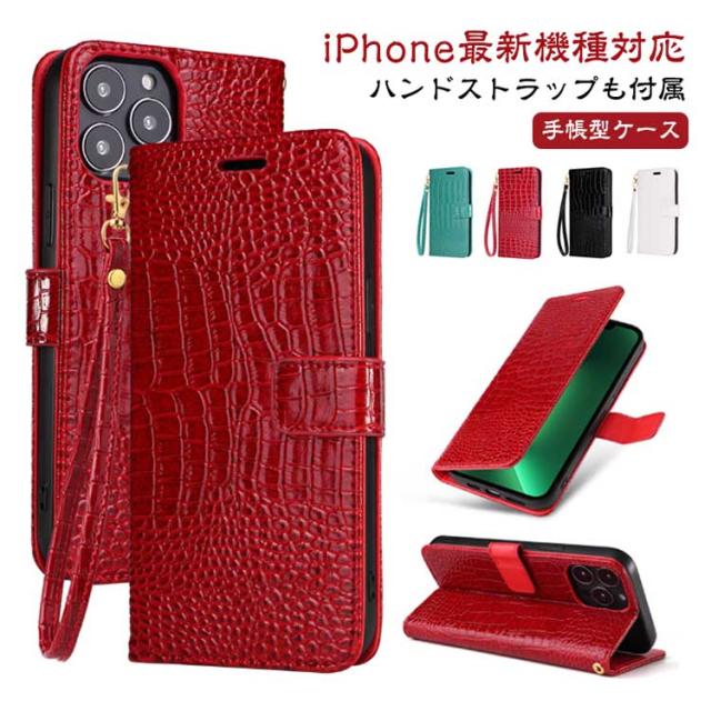 クロコダイル ワニ柄 スマホケース 手帳型 薄型 ストラップ付き 手帳型ケース カード収納 スリム iPhoneケース iPhone15 ケース マグネット内蔵 カード入れ スタンド機能 衝撃保護