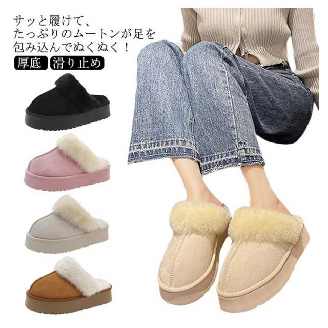ムートン スリッパ 厚底 ルームシューズ ムートン風 防寒 ファー シューズ オフィススリッパ フラット ぺたんこ 洗える 冬 冬用 暖かい 冷え対策 可愛い もこもこ 冷え防止 あったか 裏ボア おしゃれ 室内履き ファースリッパ ムートンルームシューズ 滑り止め ギフト