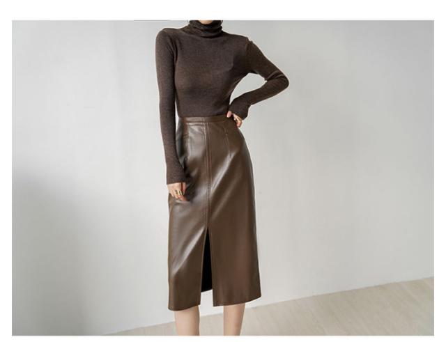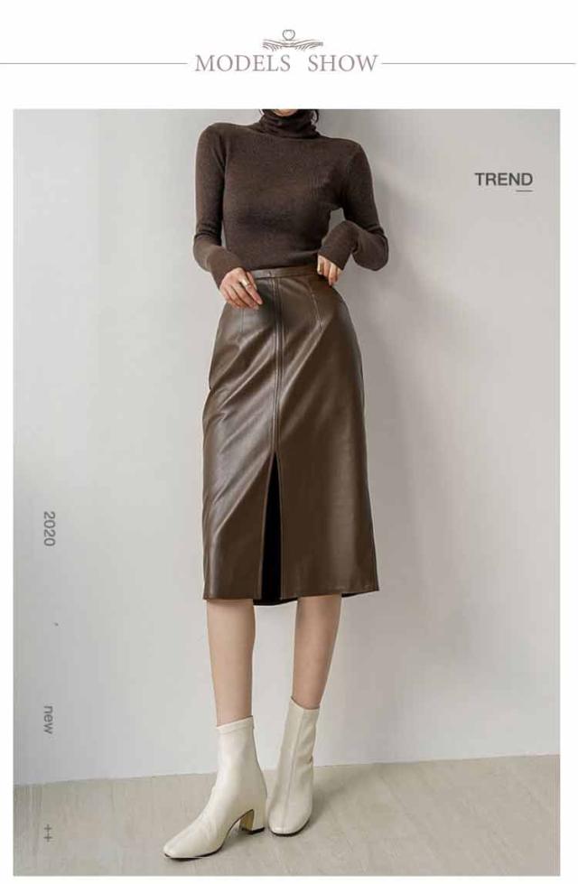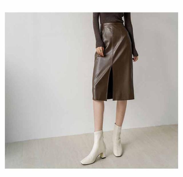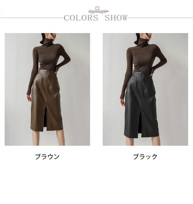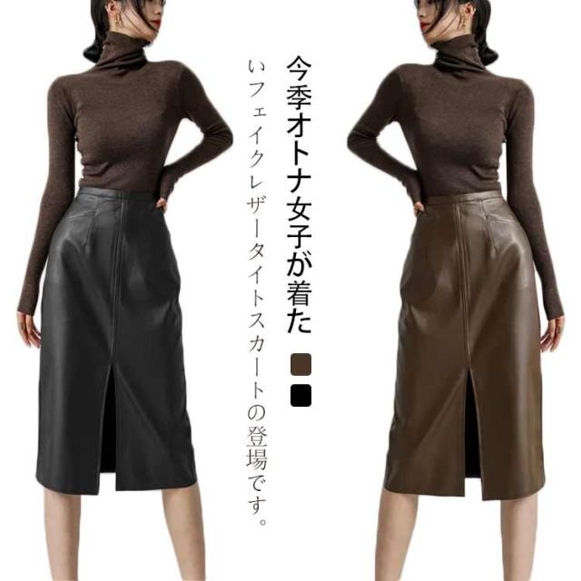送料無料 タイトスカート ロング 合皮スカート 膝下丈 フロントスリット レザースカート PU 合皮 スカート 秋冬 Aライン タイト ハイウエスト 通勤 エレガント 20代 30代 40代 送料無料