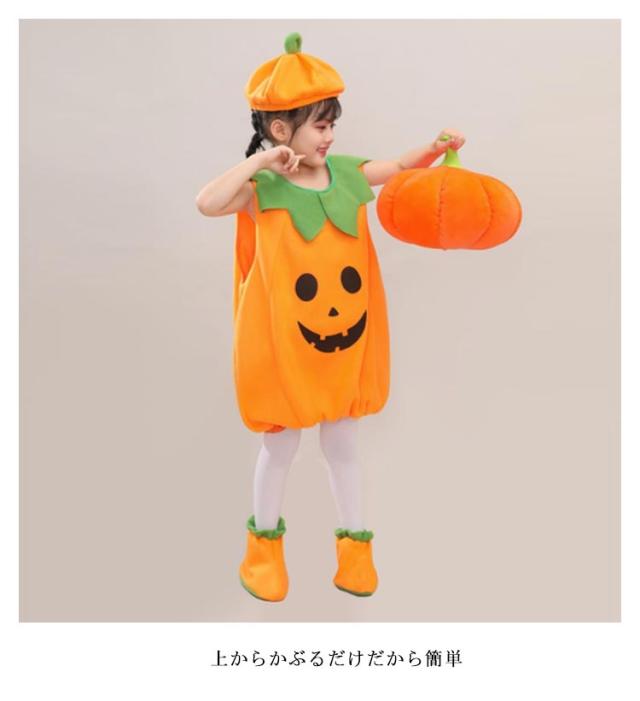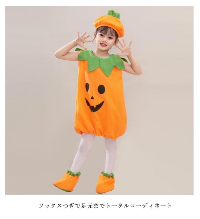 ハロウィン 衣装 3点セット 子供 コスプレ 仮装 かぼちゃ カバー 帽子 ソックス パーティーグッズ コスチューム キッズ 子供服 ジャックオーランタン かぼちゃ カボチャ 幼稚園 保育園 パンプキン コスプレ 男の子 女の子 トップス 秋冬