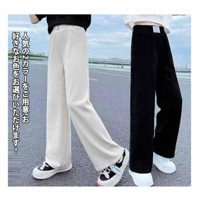 キッズ ボトムス リブパンツ リブ ワイドパンツ 子供服 ロング ワイドパンツ 大人っぽい カジュアル 女の子 ガールズ 秋 冬 春 ジュニア おそろい 110 120 130 140 150 160 170cm 黒 ブラック ベージュ 送料無料
