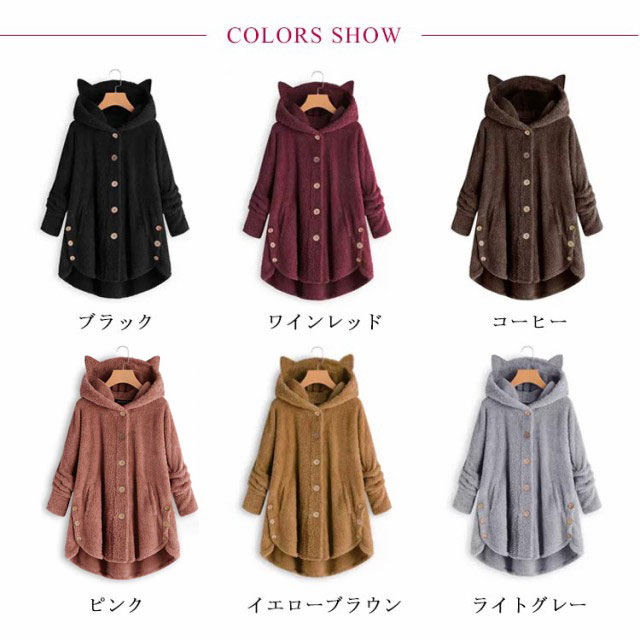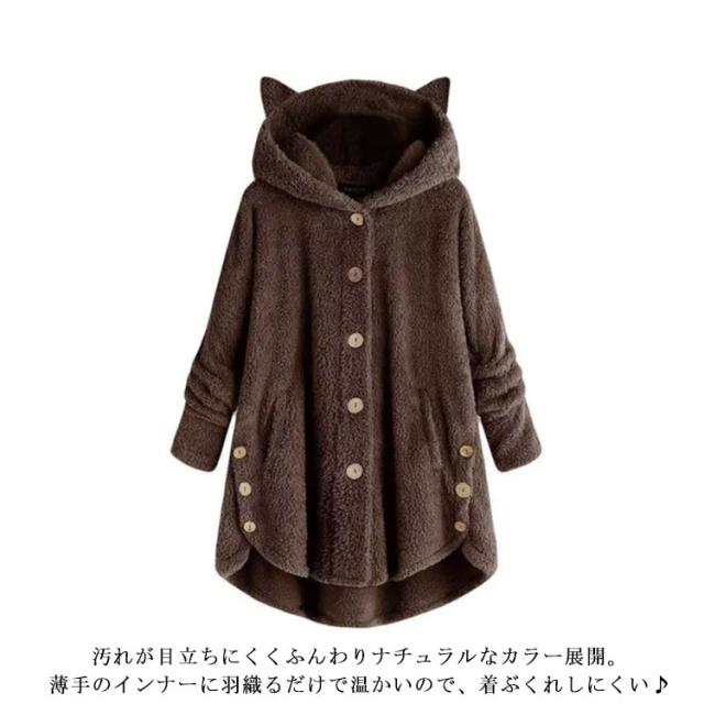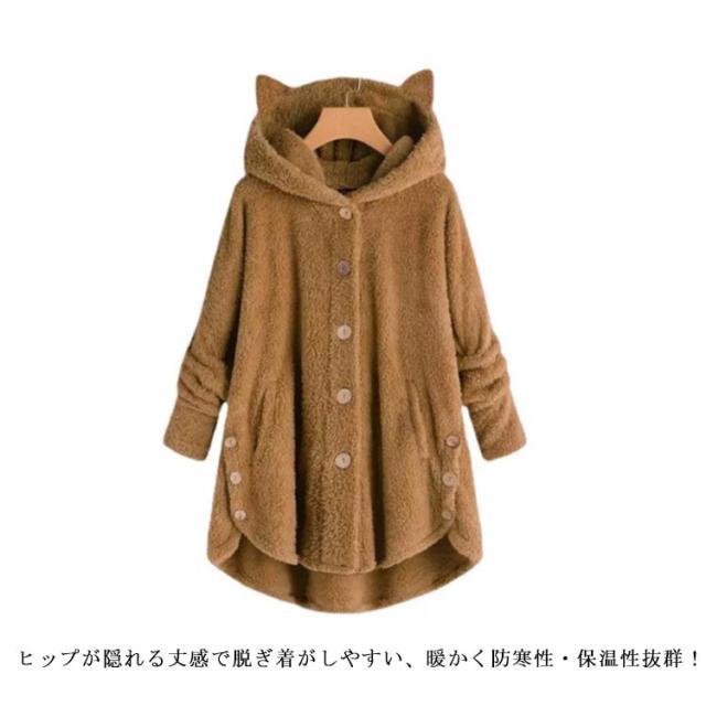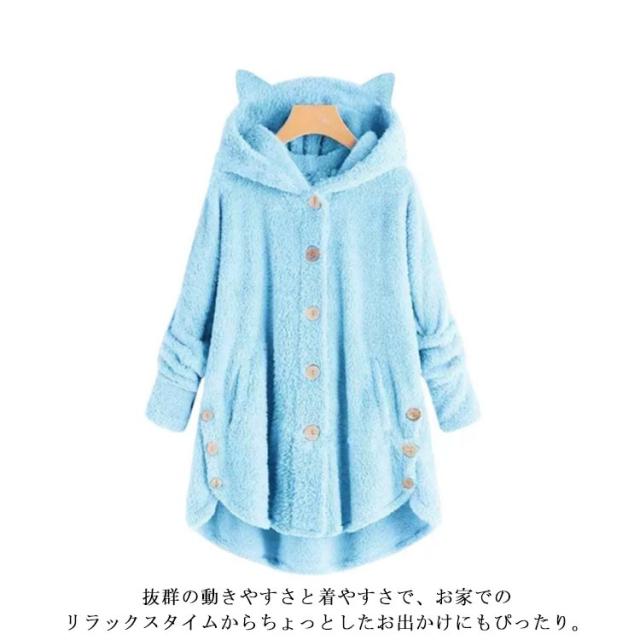 かわいい猫耳フード付き!もふもふファーたっぷり!ボア ジャケット ボア アウター ブルゾン ボアコート ふわふわ ポケット付き 防寒 暖かい 13カラー選べる 20代 30代 40 50代 大きいサイズ ルームウェア 部屋着