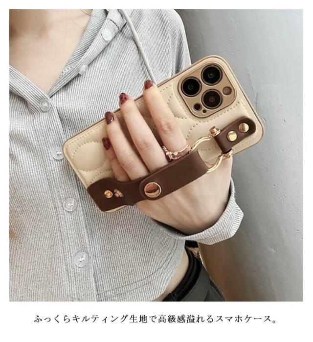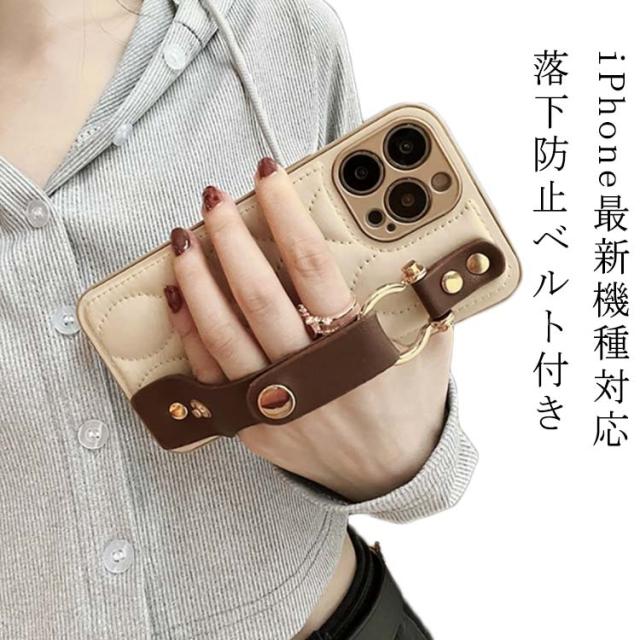 落下防止 ベルト付き キルティングケース 耐衝撃 キルティング スマホケース iPhoneケース キルティング ケース バンド付き iPhone15 ケース 衝撃保護 スマホカバー iPhone15Pro iPhone15ProMax