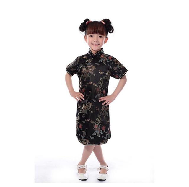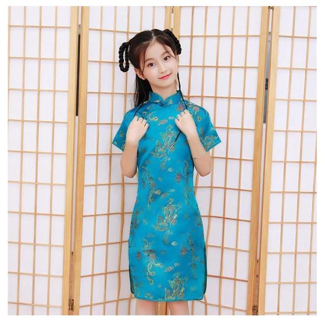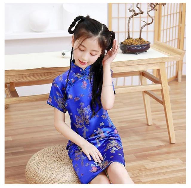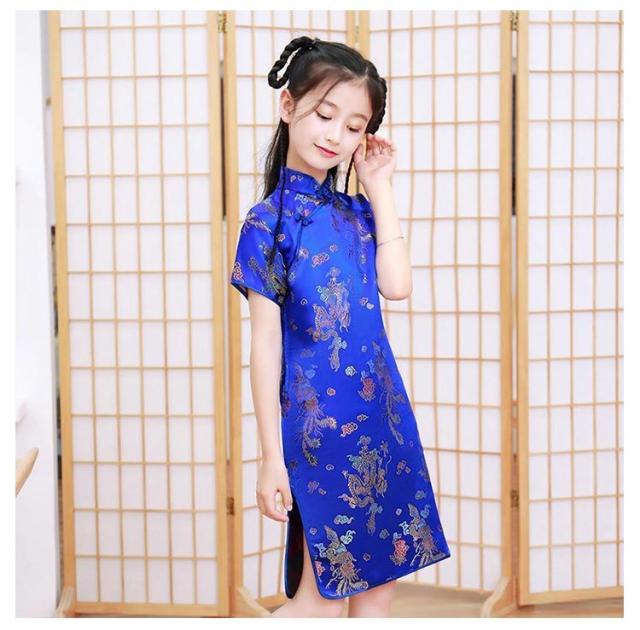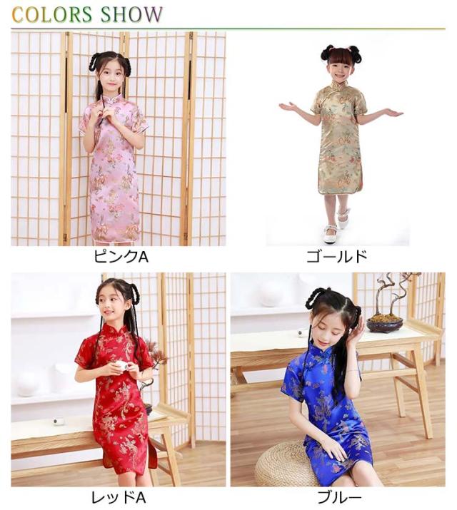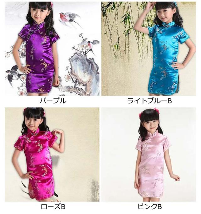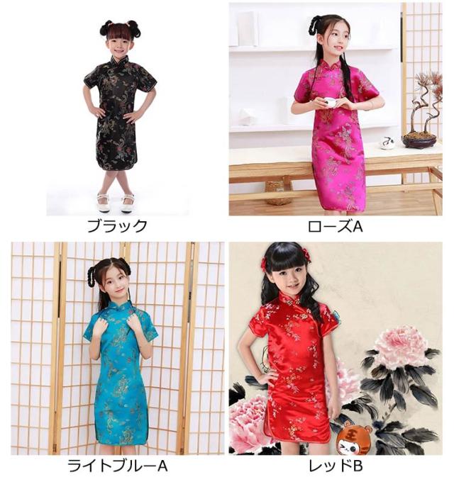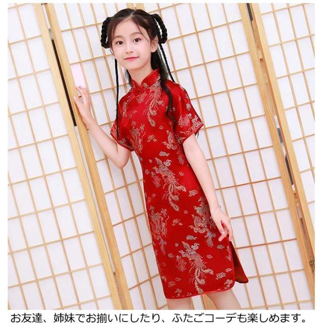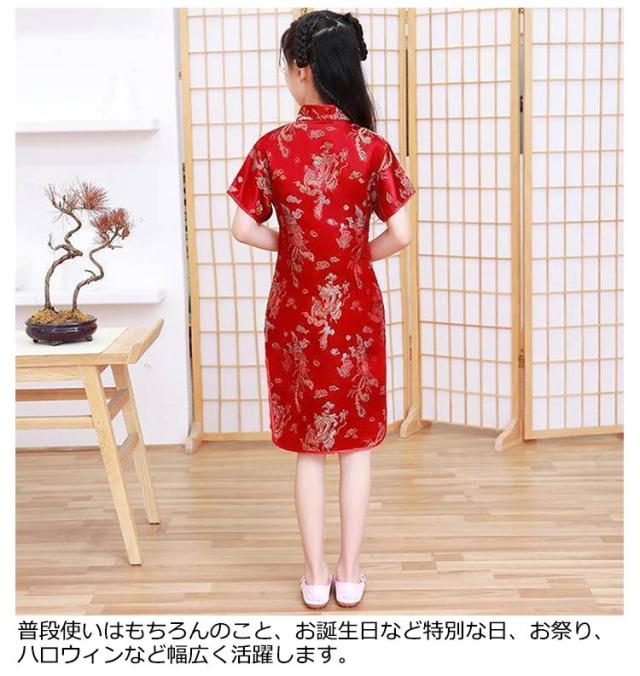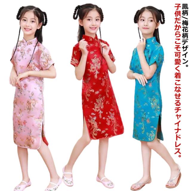 コスチューム 衣装 子供 チャイナドレス ショート丈 チャイナ服 キッズ ガールズ コスプレ ミニワンピ パーティ イベント 撮影 仮装 ハロウィン 文化祭 学園祭 忘年会 新年会 クリスマス 演劇 龍 鳳凰 梅花