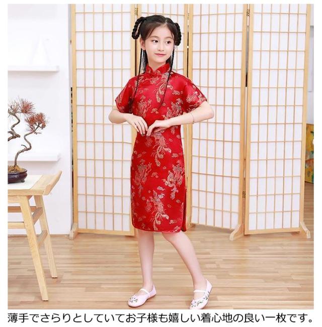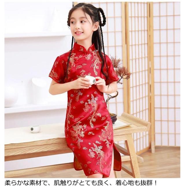 | 鳳柄/梅花柄デザイン。 子供だからこそ可愛く着こなせるチャイナドレス。 つるつるとした薄手の柔らかいサテン素材で、心地よい着心地のチャイナドレスです。 柔らかな素材で、肌触りがとても良く、着心地も抜群! 薄手でさらりとしていてお子様も嬉しい着心地の良い一枚です。 お友達、姉妹でお揃いにしたり、ふたごコーデも楽しめます。 普段使いはもちろんのこと、お誕生日など特別な日、お祭り、ハロウィンなど幅広く活躍します。 | |