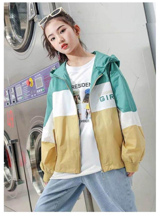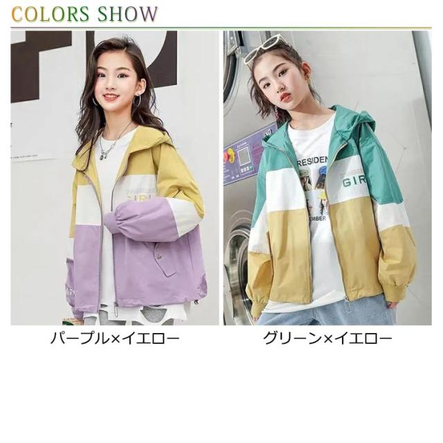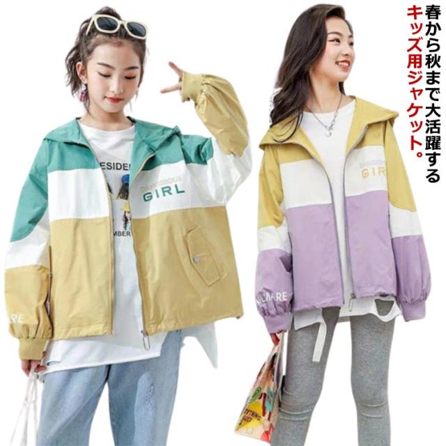 子供服 マウンテンパーカー キッズ 女の子 ウインドブレーカー コート 春 秋 ジュニア ジャケット アウター フード付き 女の子 ジップアップ トップス お洒落 韓国子供服