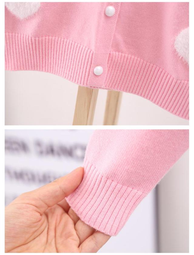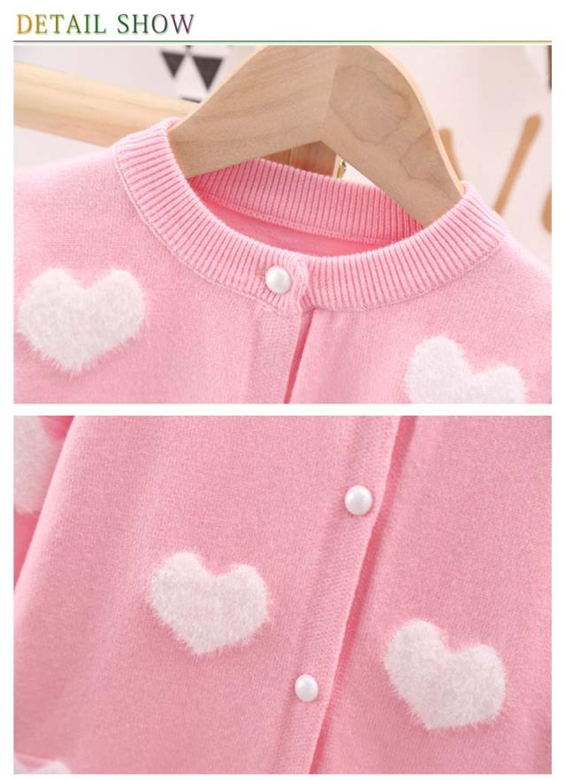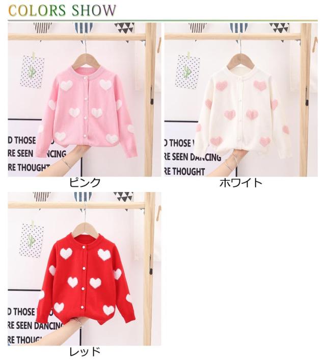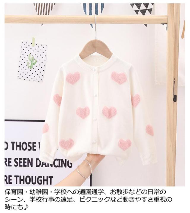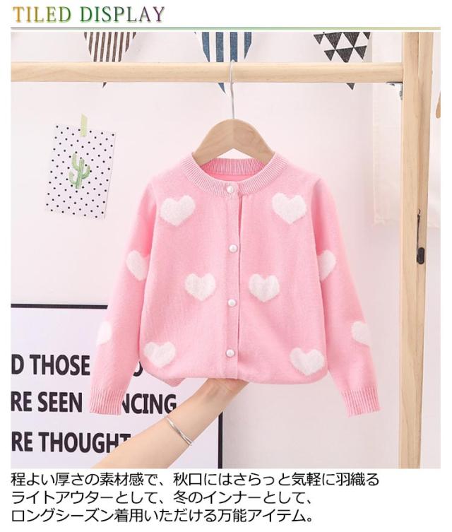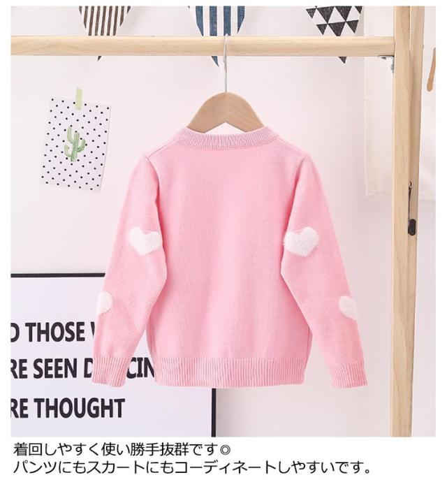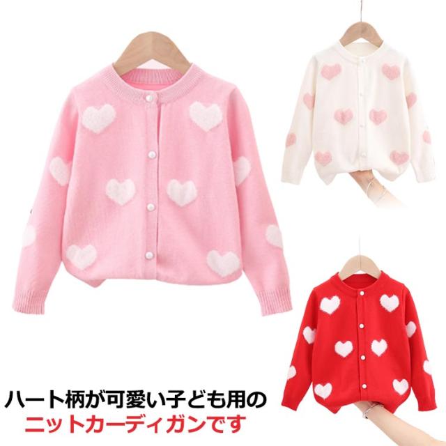カーディガン ニット キッズ 子供用 羽織り 長袖 ハート柄 女の子 前開き かわいい 秋冬 セーター 着回し お洒落 可愛い お出かけ 外出 普段使い 女児 園児 小学生 プレゼント