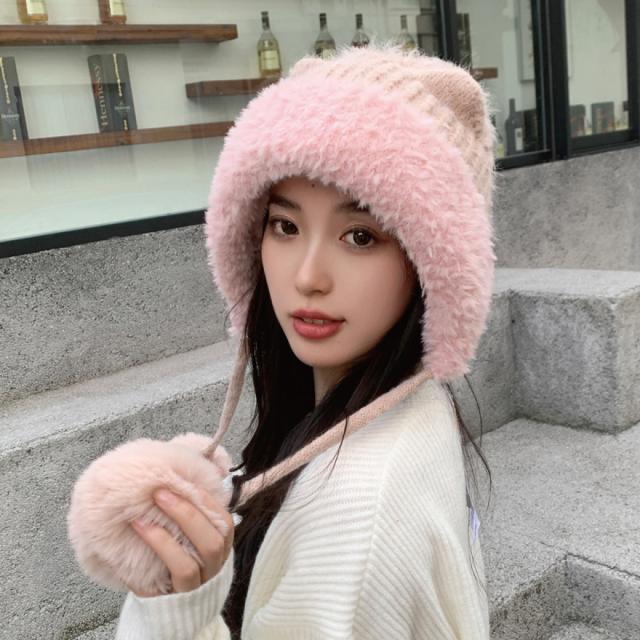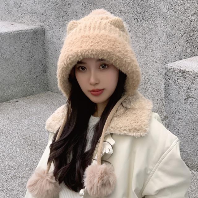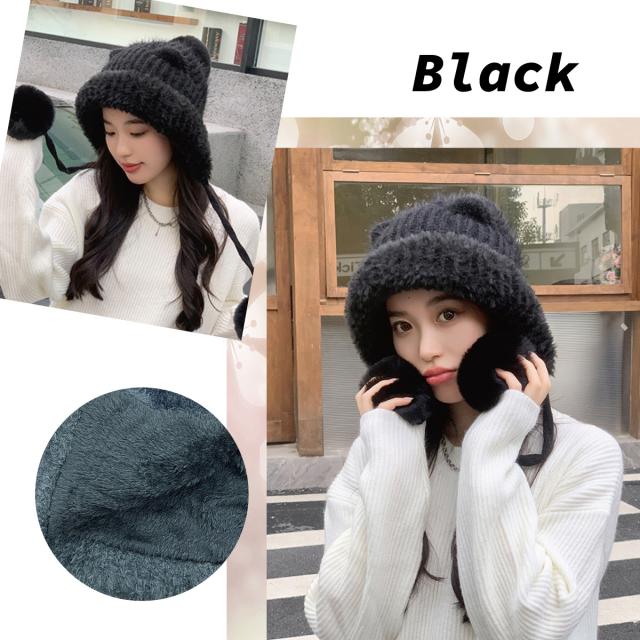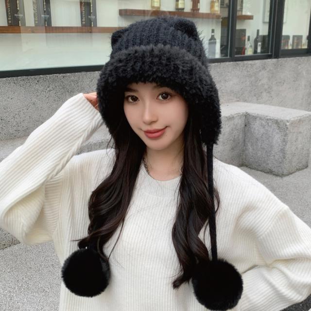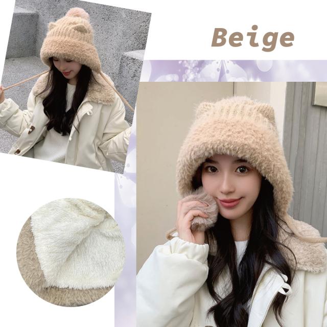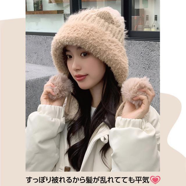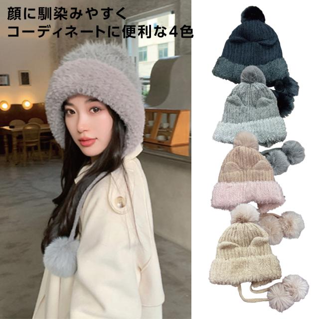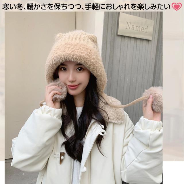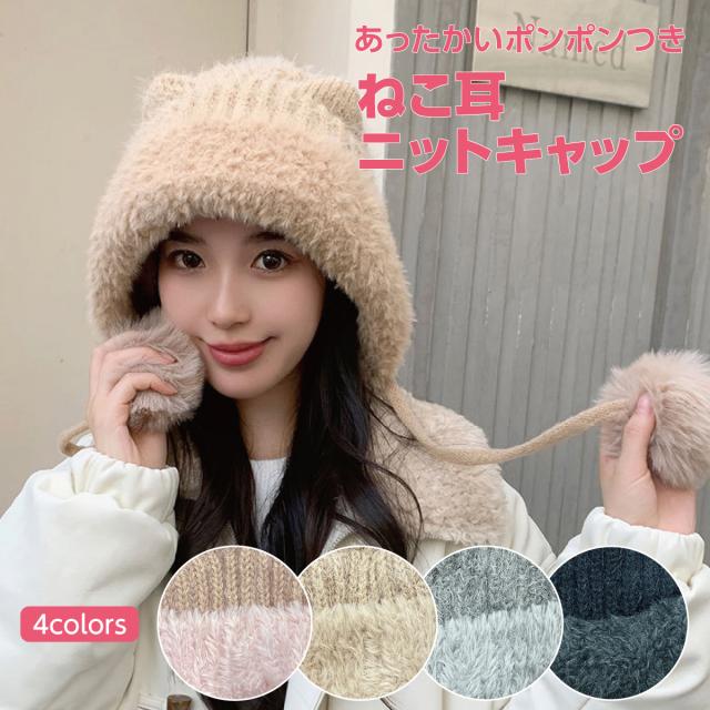 ニット帽 レディース 猫耳 ニットキャップ おしゃれ 耳当て かわいい 暖かい 秋冬 毛糸 ハット あったか 編み込み 防寒 ニット キャップ 帽子 かわいい cat-ear