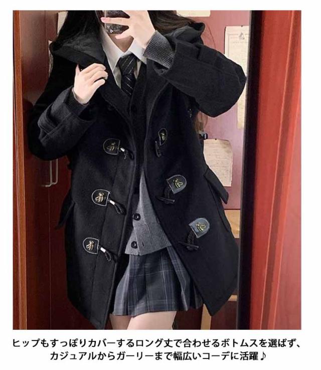 制服 ロング コート ダッフルコート スクールコート 秋冬 学生 アウター カジュアル フード付き 保温 厚手 高校生 中学生 暖かい 通学 ミディアム丈 クリスマス プレゼント
