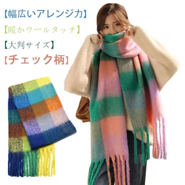 ストール 大判 厚手 レディース チェック柄 タッセル付き カラフル ストール マフラー 小顔効果 ギフト プレゼント 誕生日 贈り物 女性 結婚式 バレンタインデー ホワイトデー クリスマス