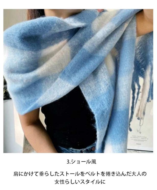 | 毎年秋冬シーズンのワードローブに欠かせないマストアイテム! カラーバリエーションが豊富なので年齢問わず使えたり、 カラー違いで揃えてコーデを楽しんでみたり、プレゼントにも喜ばれそうなストールです。 【チェック柄】ダークになりがちなスタイルをパッと明るく仕上げてくれるワンポイントにぴったりなチェック。 【暖かウールタッチ】ふんわりと柔らかで厚みがありウールのような極上な肌触りで女性の大敵な冷えから守ってくれるから毎日のコーデに手放せなくなりそう。 【大判サイズ】大判サイズのストールだから首元にくるくる巻くとボリュームができ小顔効果アップ。 【幅広いアレンジ力】 1.スヌード風 ほっこりキュートなスタイルに 2.アフガン巻き サイドのフリンジを活かしたハイセンスなポイント使いに 3.ショール風 肩にかけて垂らしたストールをベルトを捲き込んだ大人の女性らしいスタイルに 4.ブランケット オフィスやスクールで冷えを感じる女性に アレンジ幅がマルチなストールでコーデがきっと楽しくなる魔法のアイテム! | |