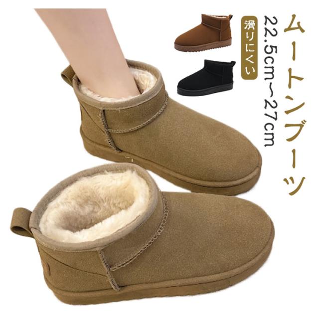 ムートンブーツ レディース ミニ ムートンシューズ ルームシューズ 内ボア スリッパ 歩きやすい 軽い 滑りにくい 防寒 冬 秋 靴 スリッポン モカシン もこもこ ファー 雨 雪 室内履き 外履き