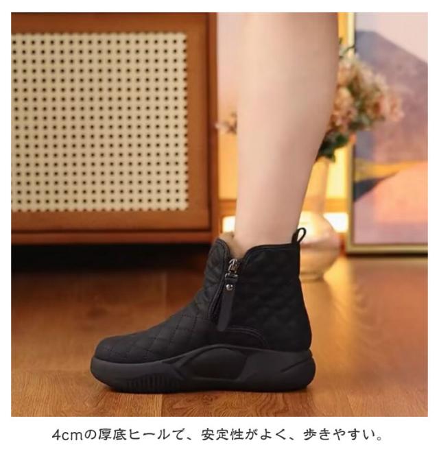 | 厚底ショートブーツ 22.5-25cm 4cmの厚底ヒールで、安定性がよく、歩きやすい。 アッパーには防水・防汚・お手入れのしやすいPU材料を採用する。 滑りにくく、耐摩耗性に優れたラバーソールを採用。 低反発パッドが歩行時の足へのクッション性を高め、ソフトで快適な履き心地を実現します。 | |