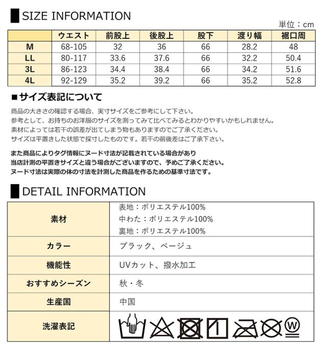 3L:ウエスト86-123 前股上34.4 後股上38.4 股下66 渡り幅34.2 裾口周51.6