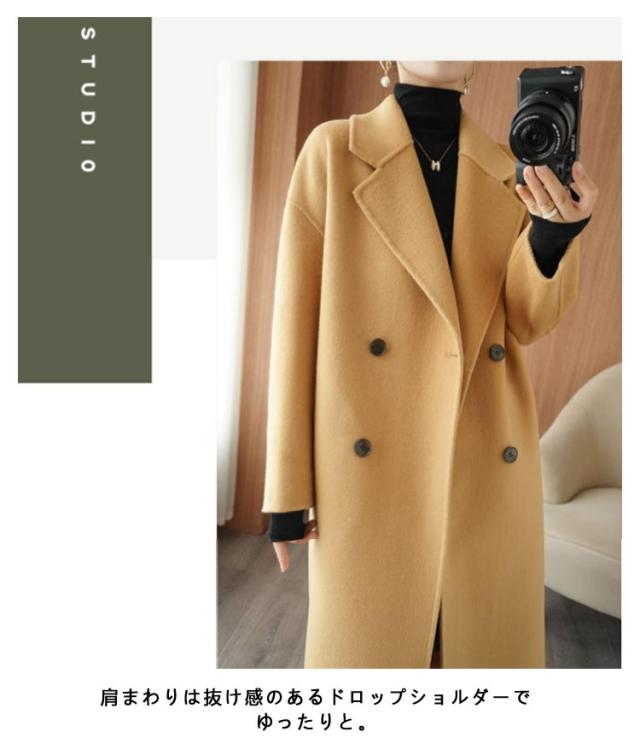 | 厚みのあるウール生地を使用した、ダブルカラーコート。 暖かみのある風合いとデザイン性のある生地を活かした、トレンド感のあるオーバーサイズコートです。 肩まわりは抜け感のあるドロップショルダーでゆったりと。 便利なサイドポケット付き。 普段のシンプルコーデにサラッと羽織るだけで サマになる、シーズンのおすすめアウターです。 | |