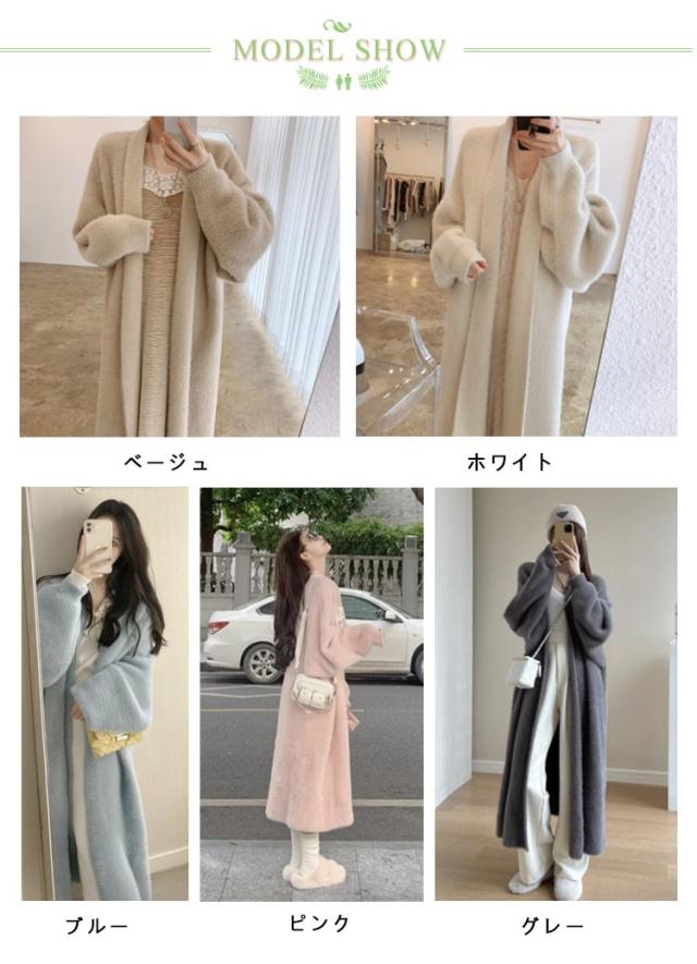 ニットカーディガン ロング丈 ガウン もこもこ 秋冬春 長袖 厚手 無地 羽織り ファーコート コーディガン ゆったりシルエット アウター オーバーサイズ BIGサイズ 韓国ファッション 前開き 無地 羽織り トップス 柔らかい カジュアル