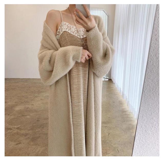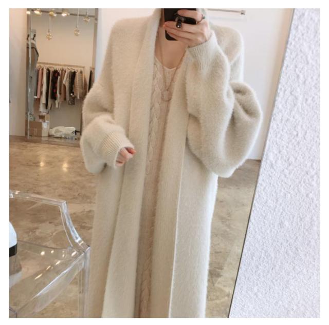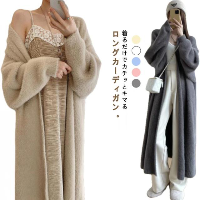 ニットカーディガン ロング丈 ガウン もこもこ 秋冬春 長袖 厚手 無地 羽織り ファーコート コーディガン ゆったりシルエット アウター オーバーサイズ BIGサイズ 韓国ファッション 前開き 無地 羽織り トップス 柔らかい カジュアル