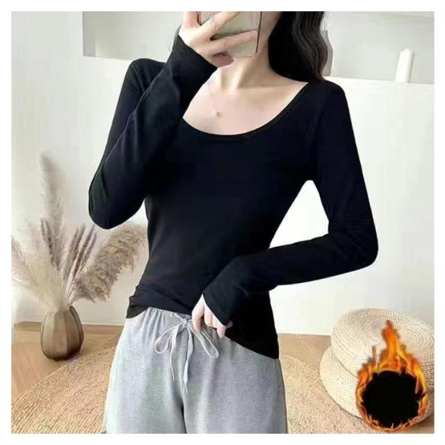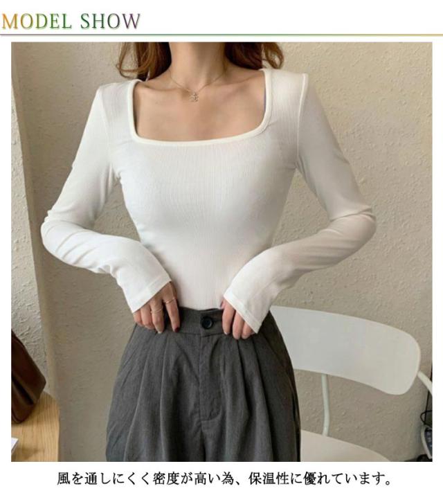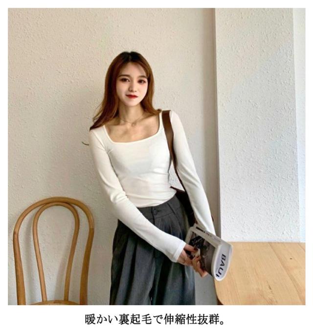 裏起毛 インナー レディース 長袖 トップス 保温 防寒 インナーシャツ カットソー スクエアネック ラウンドネック ロンt トップス 暖かい下着 あったかインナー tシャツ 細身 スリム フィット ヒートカットソー 大きいサイズ S M L XL 2XL