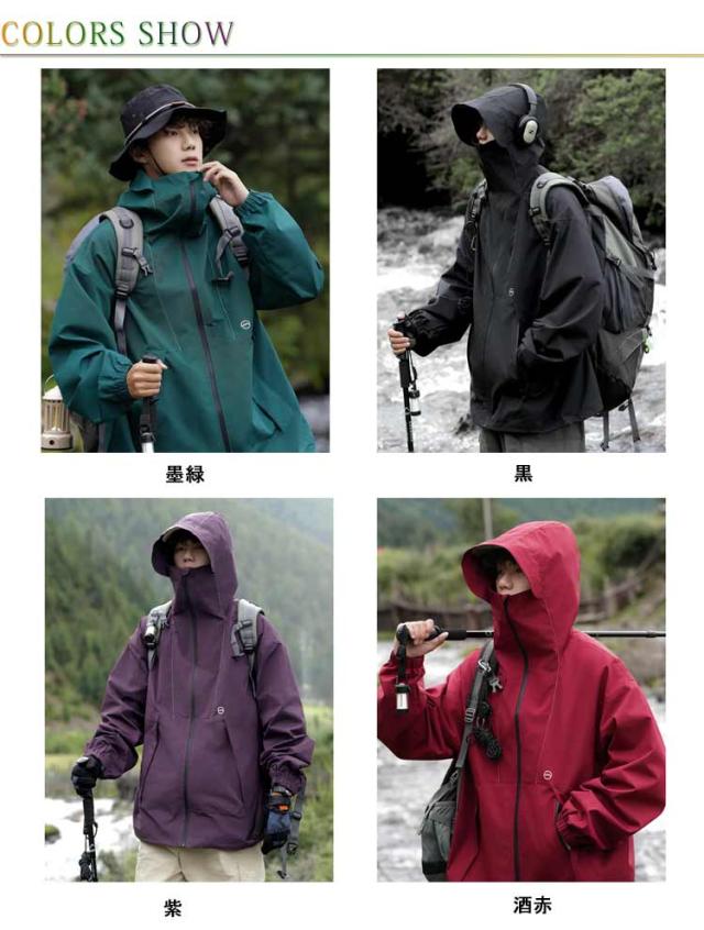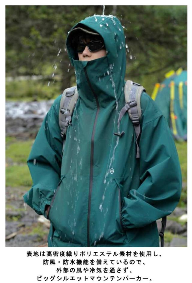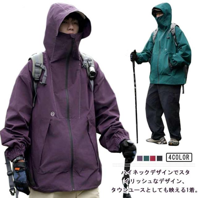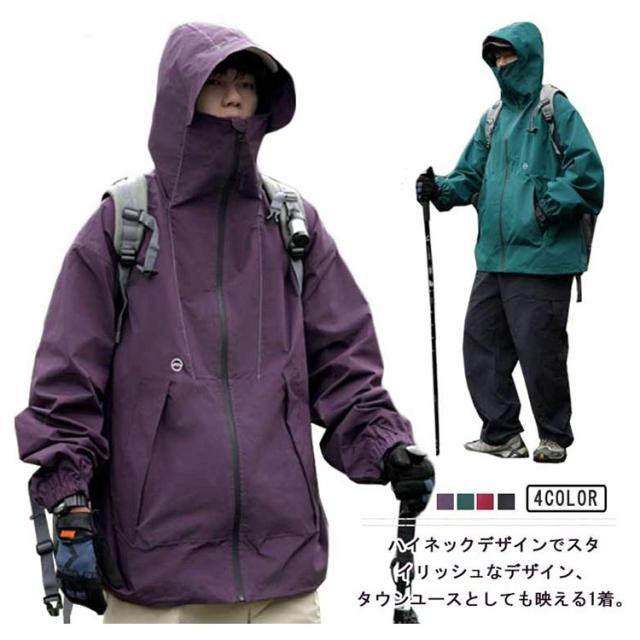 防水マウンテンパーカー マウンテンパーカー メンズ ジャケット パーカー フード付き ウィンドブレーカー ブルゾン ハイネック 立ち襟 大きいサイズ アウトドア 撥水 防風 防寒 アメカジ M L XL 2XL 3XL