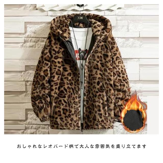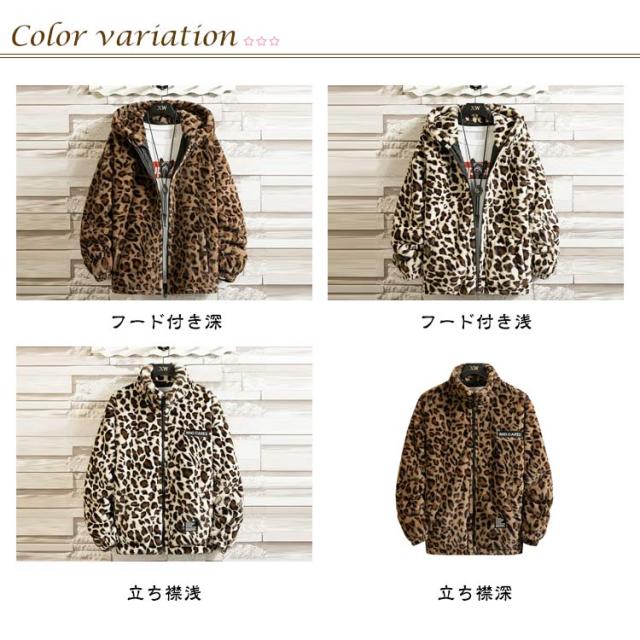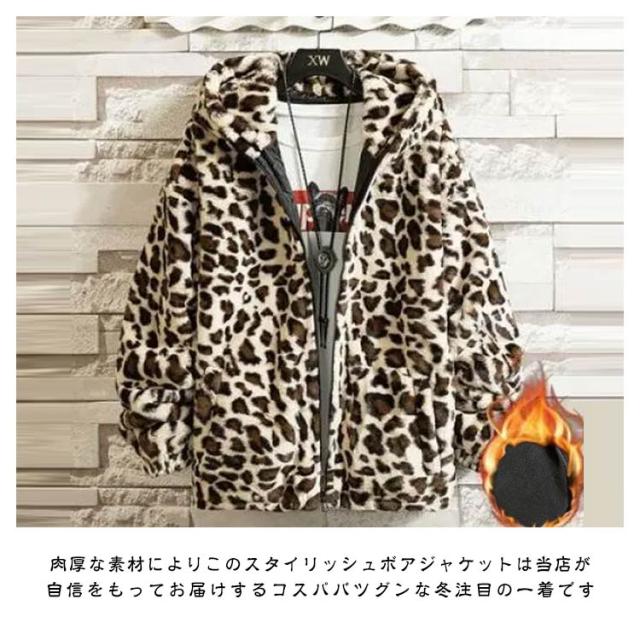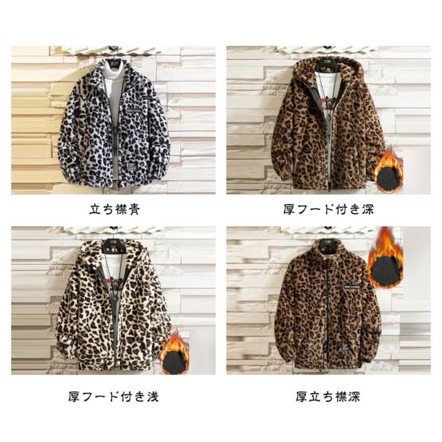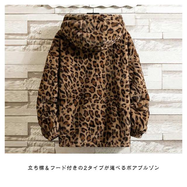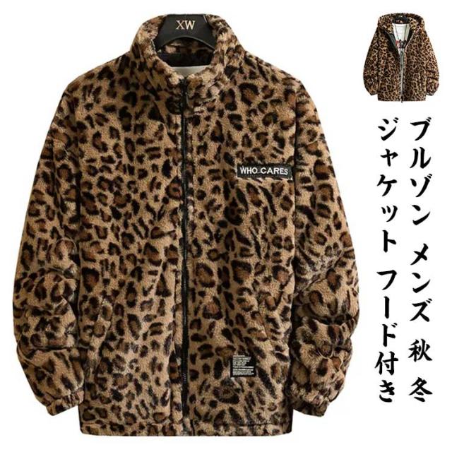ブルゾン メンズ 秋 冬 ジャケット フード付き 立ち襟 ヒョウ柄 ボアジャケット レオパード柄 厚手 中綿入り 中綿入りなし ブルゾン スタンドカラー パーカー ボアパーカー ジップアップブルゾン 防寒 もこもこ 暖かい 秋冬 韓国 原宿系