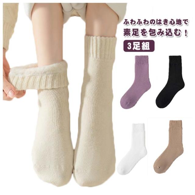 裏起毛 あったか 靴下 レディース 3足組 保温 厚手 暖かい 冷え取り靴下 冷えとり靴下 防寒 クルーソックス 対策 オフィス用 会社用 仕事用 事務 冬 母の日